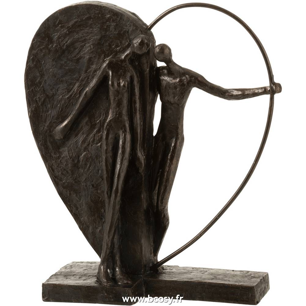 J-Line by Jolipa Couple Dans Demi Cœur Resine Marron Fonce