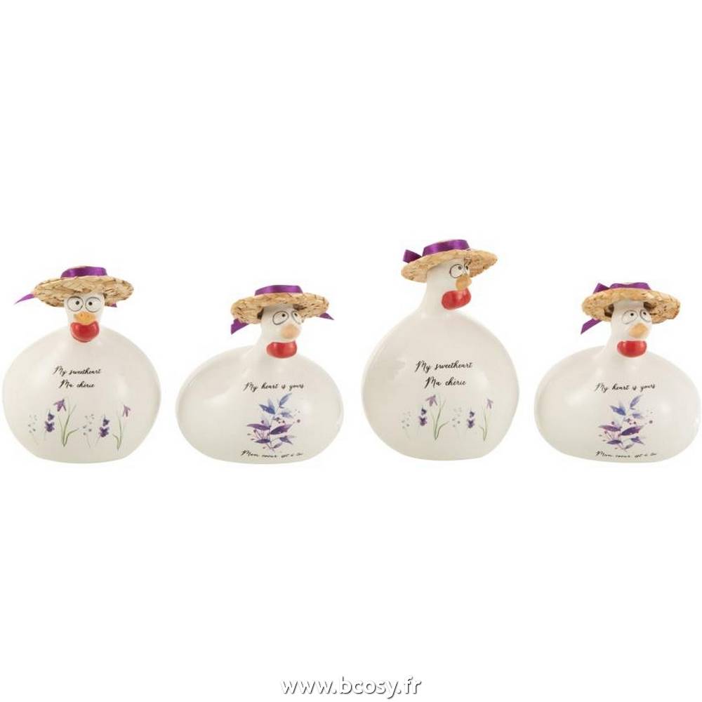 J-Line by Jolipa Poule Dictons + Chapeau Ceramique Blanc/Mauve Small Assortiment De 4