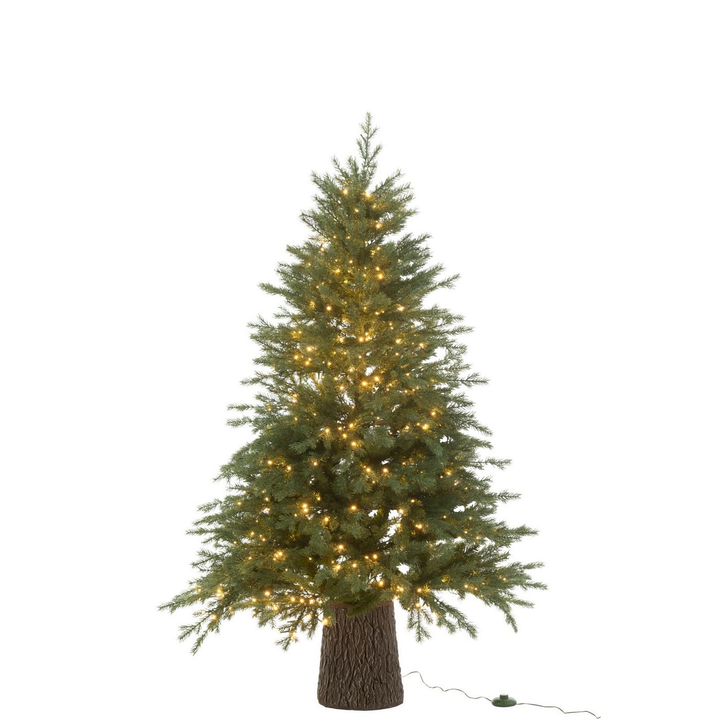 J-Line by Jolipa Sapin De Noël 600 Led Socle En Bois Plastique Vert Foncé