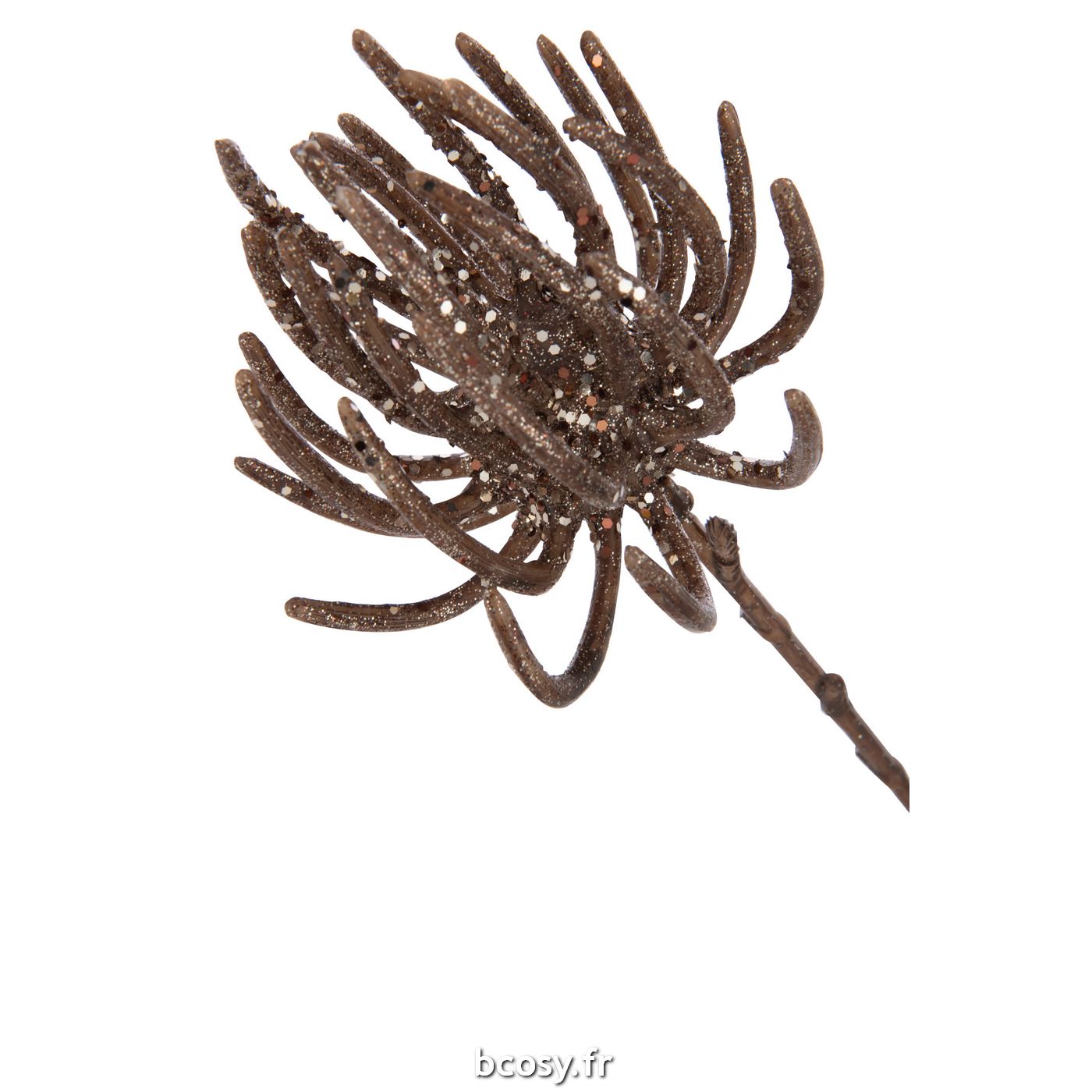 Jolipa Branche 2 Fleurs Paillettes Plastique Brun