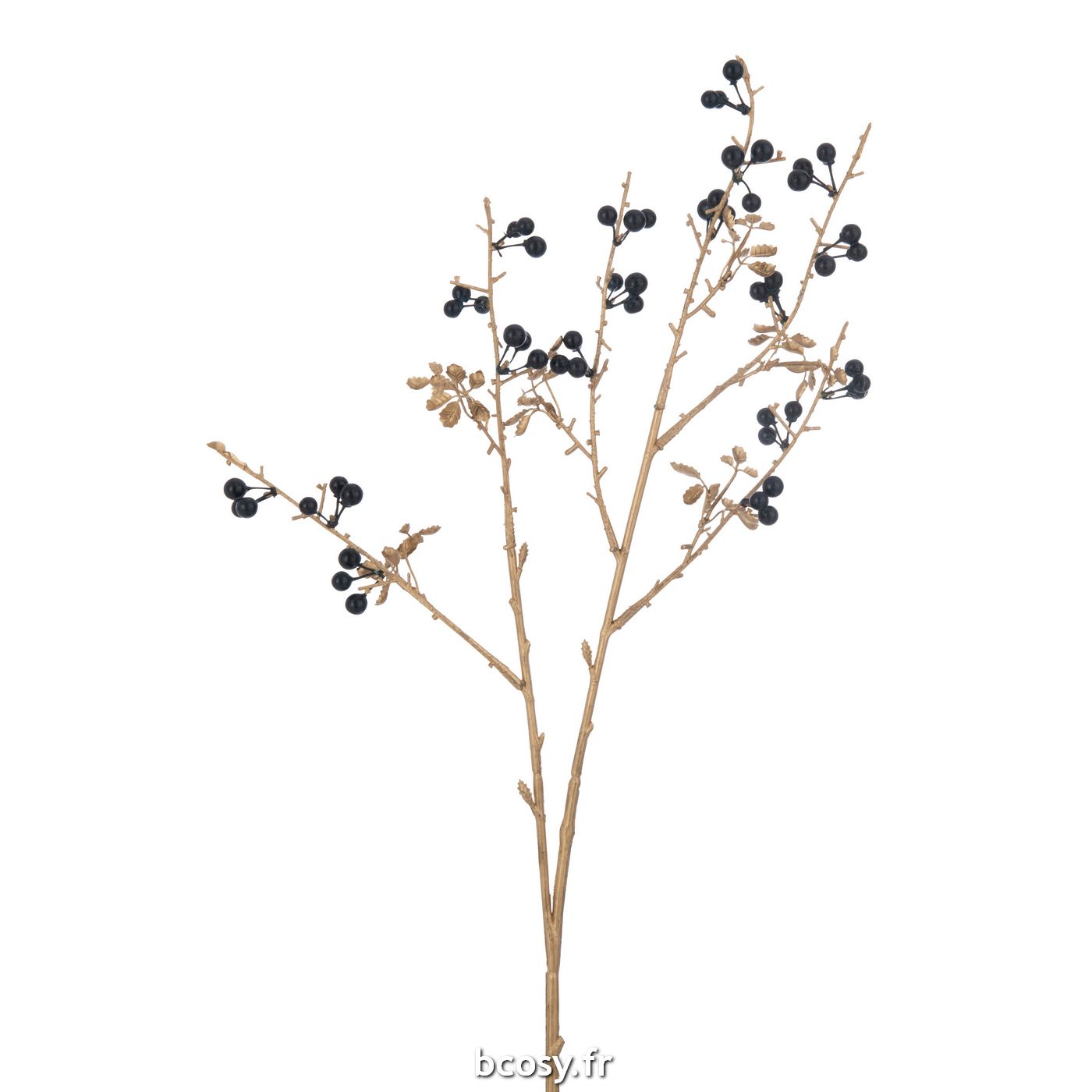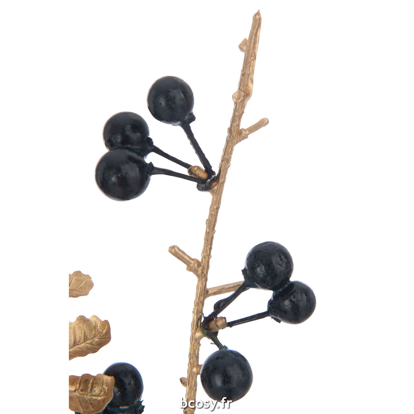J-Line by Jolipa Branche Baies+Feuilles Plastique Bleu Fonce/Or