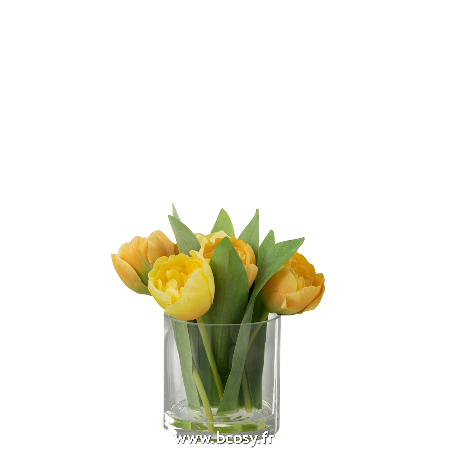 Jolipa Tulipes En Vase Rond Plastique Verre Jaune Small