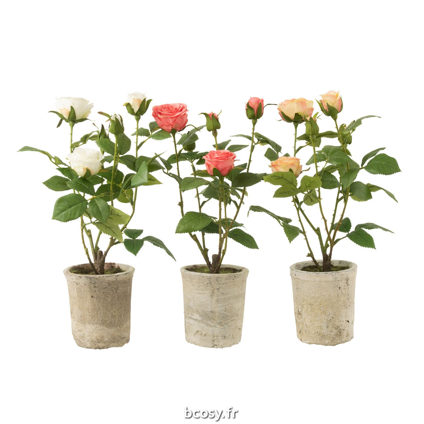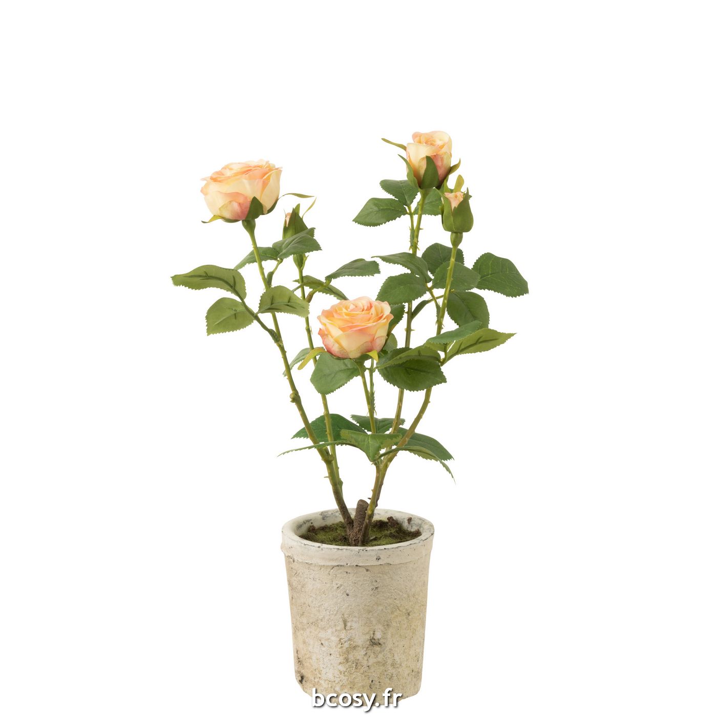 Jolipa Rose 5 Tetes En Pot Plastique Textile Jaune Vert