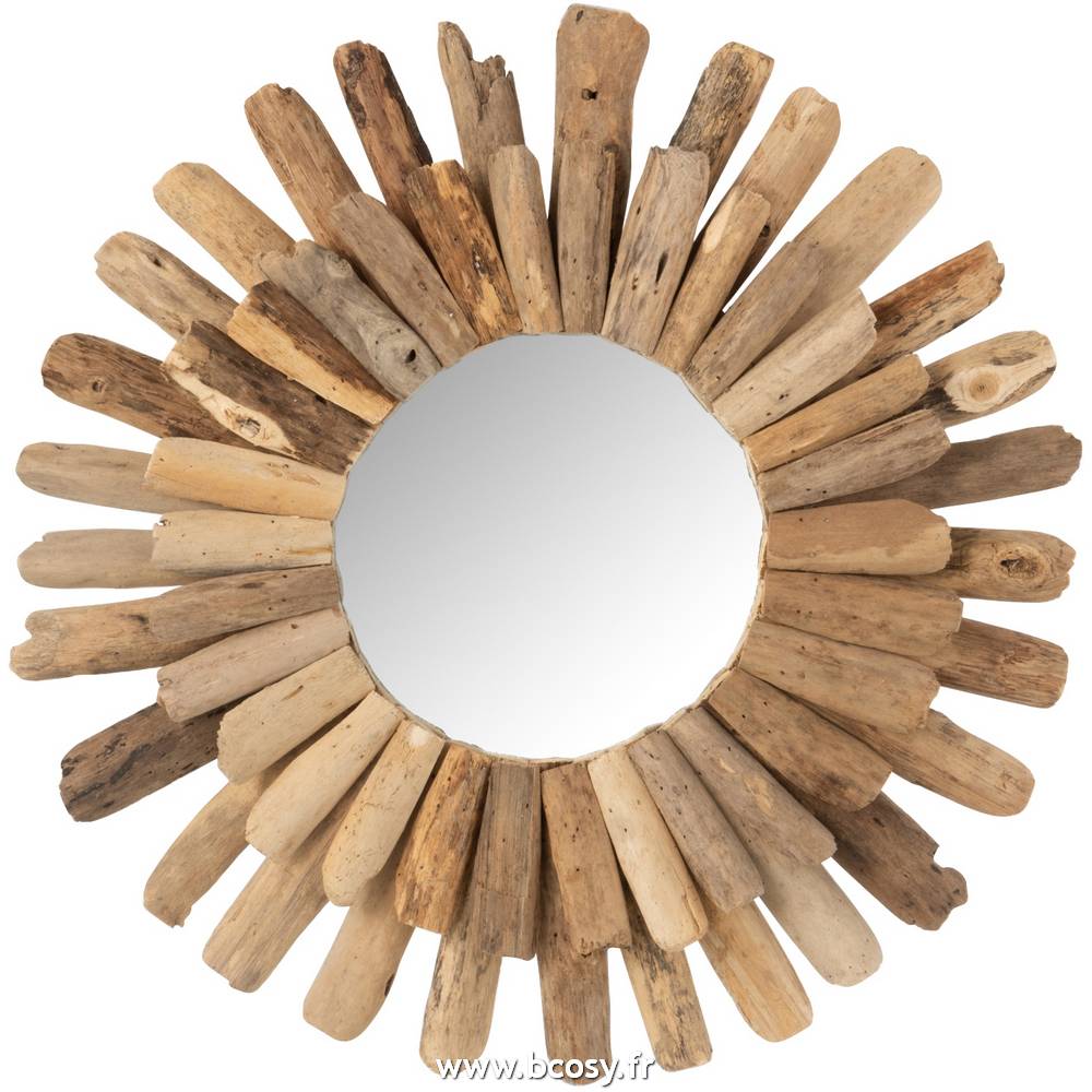 J-Line by Jolipa Miroir Rond Bois Flotte Naturel Medium