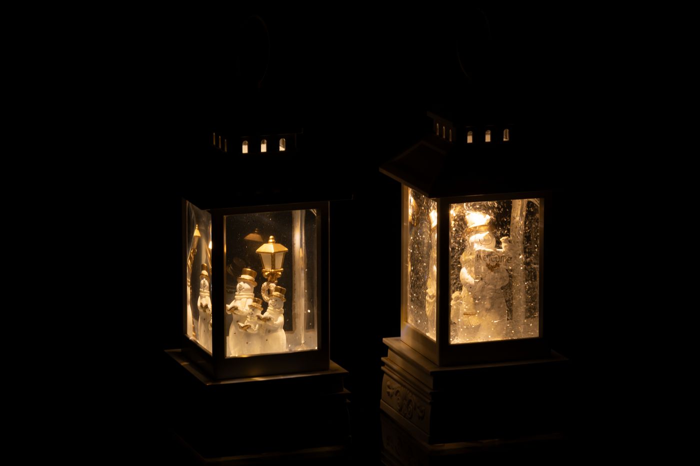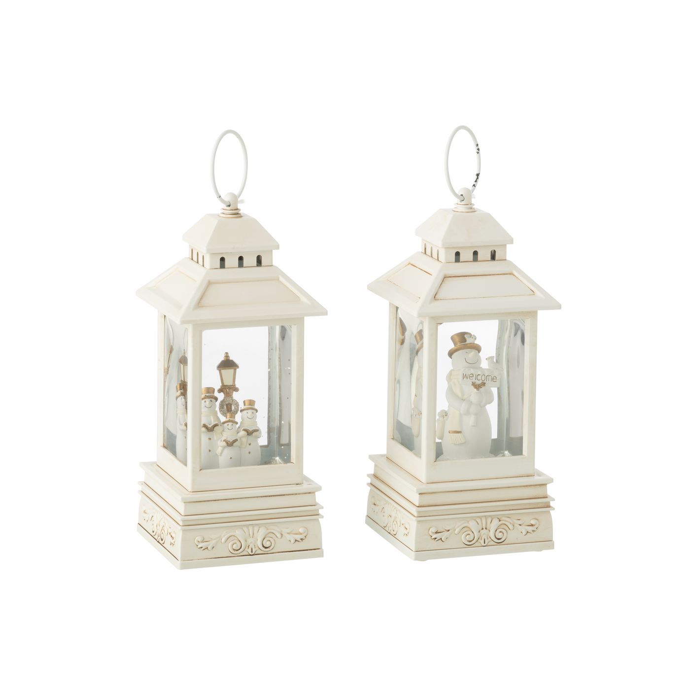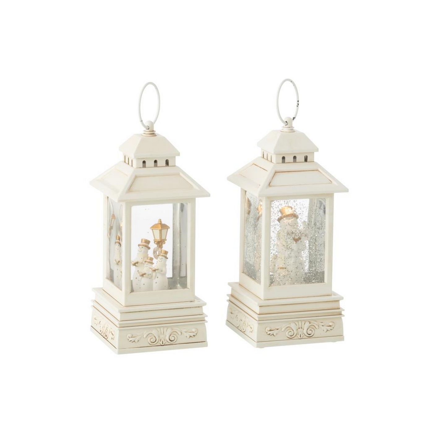 J-Line Boule De Neige Lanterne Bonhomme De Neige Plastique Blanc L11xB11xH25 cm 55355 Assortiment de 2 pcs