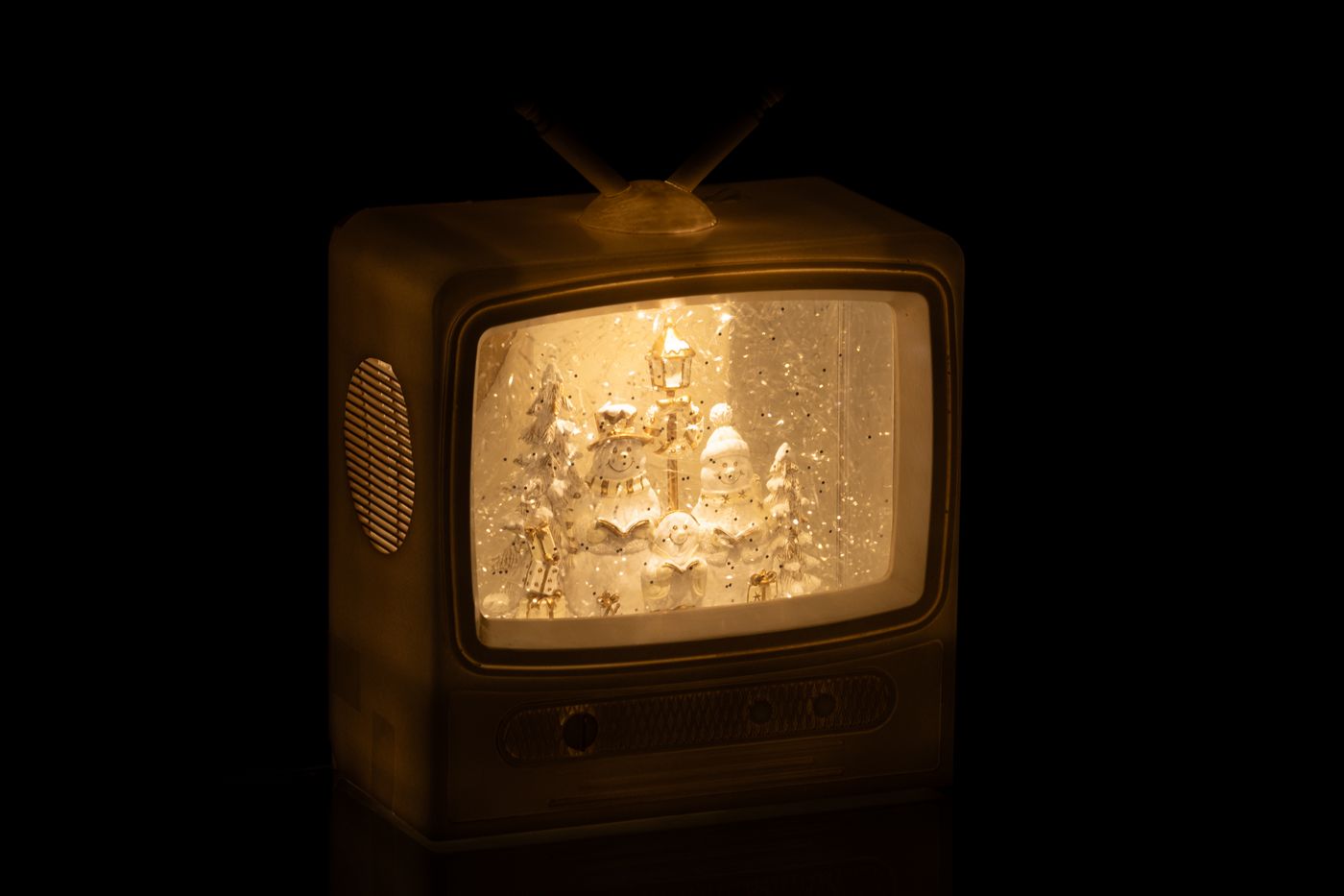 J-Line Boule De Neige Television Plastique Blanc L18xB9xH22 cm 55359