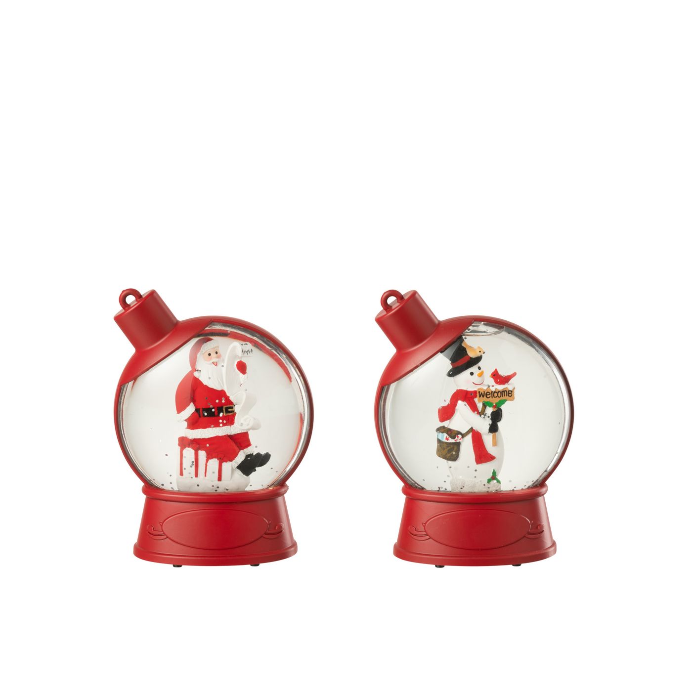 J Line Aufhänger Wasserglobus Schneemann + Weihnachtsmann Plastik Weihnachtsrot Sortiert 2
