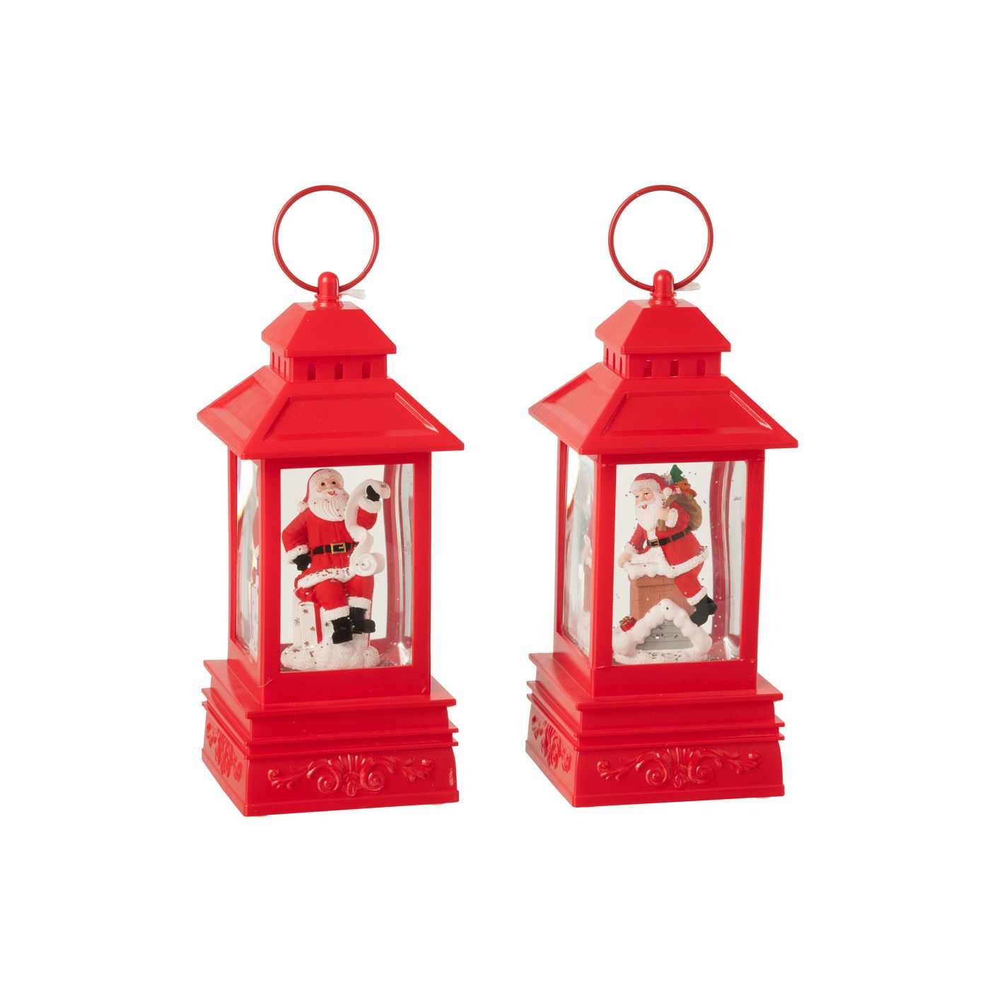 J-Line Boule De Neige Lanterne Père Noël Plastique Rouge Noël L11xB11xH25 cm 55366 Assortiment de 2 pcs
