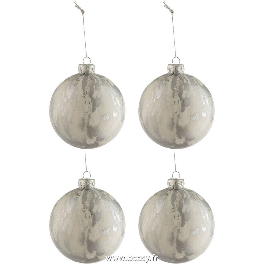 Jolipa Boite De 4 Boule De Noel Marbre Verre Blanc Argent Medium
