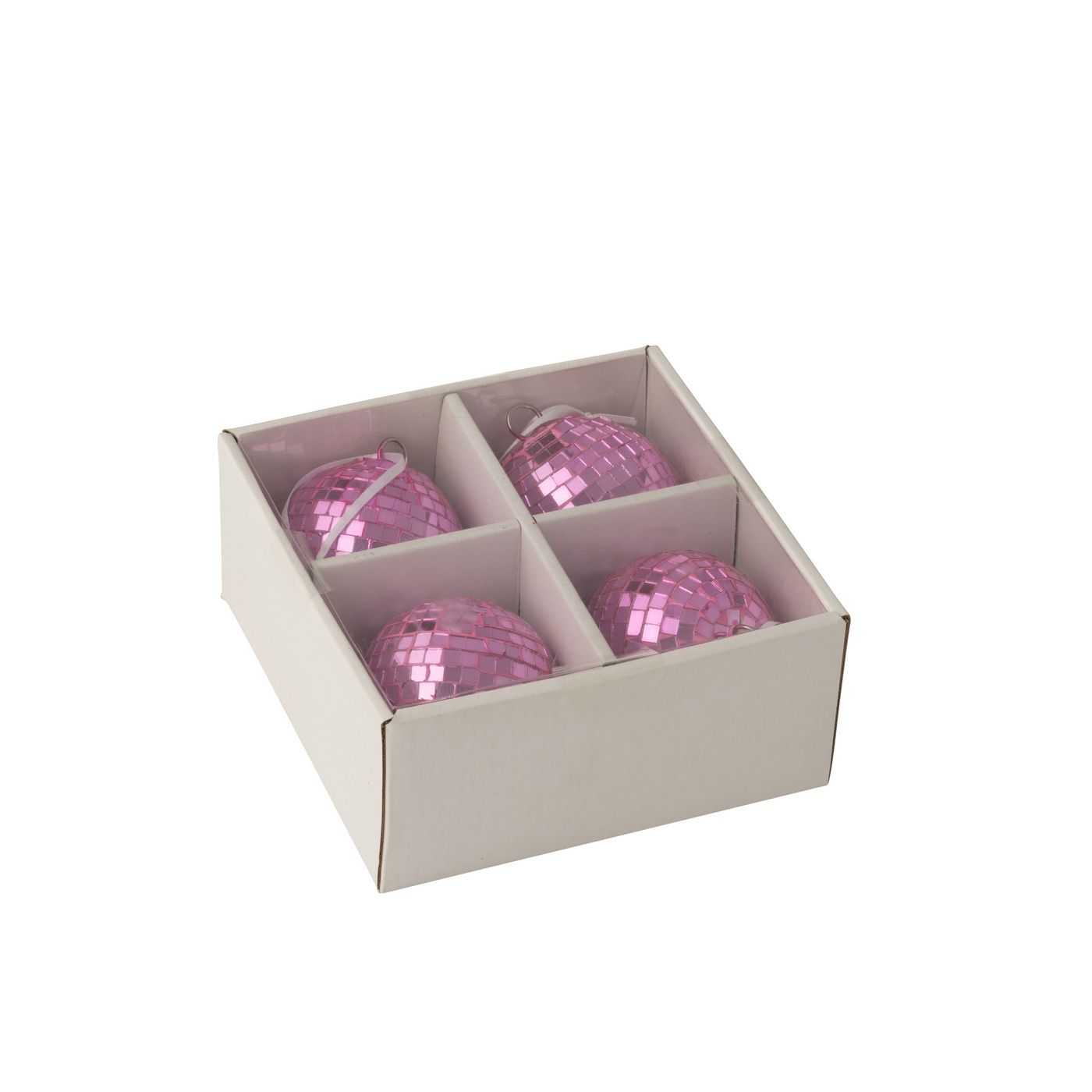 J-Line by Jolipa Boite De 4 Boule De Noël Miroir Verre Rose Small