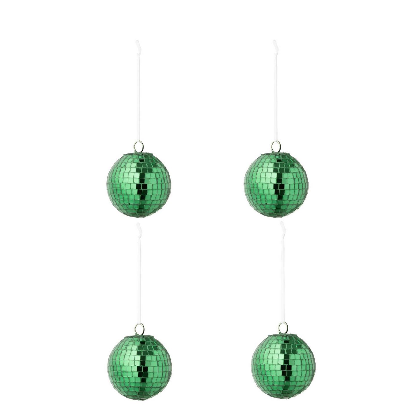 J-Line Boite De 4 Boule De Noël Miroir Verre Vert Small L7xB7xH7 cm 55150