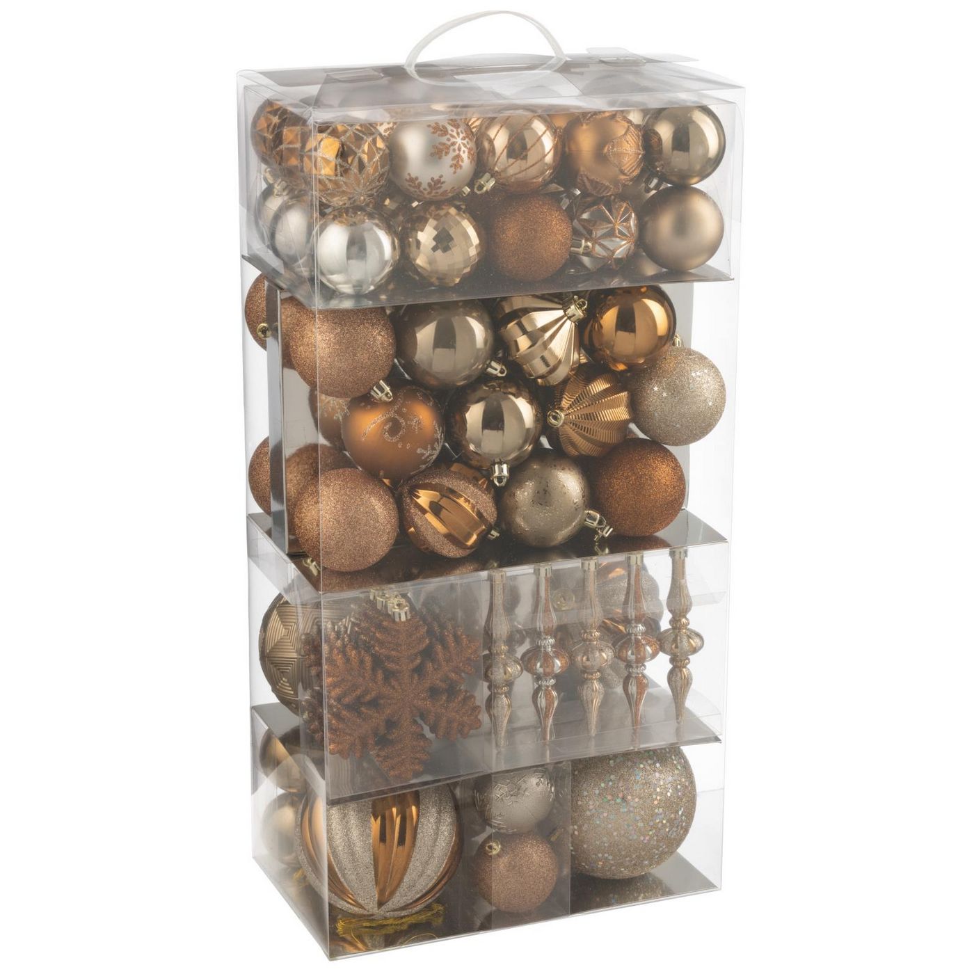 J-Line Boite De 80 Boule De Noël Plastique Marron L30xB18xH58 cm 59490