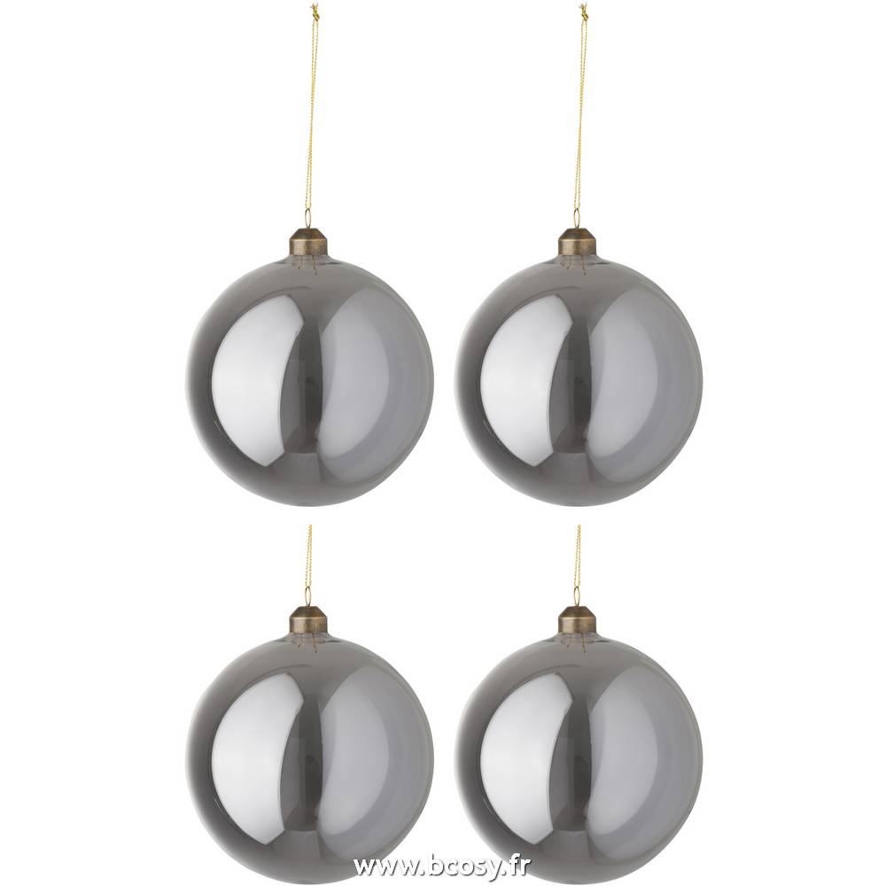 J-Line by Jolipa Boite De 4 Boule De Noel Lisse Verre Gris Perle Large