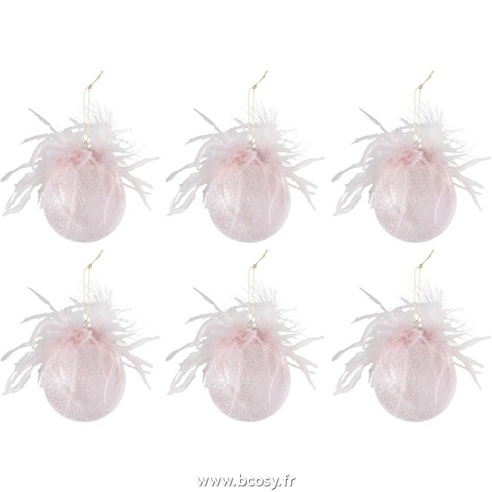 J-Line Boite De 6 Boules De Noel Plumes Verre Mat Rose Small 12H 97582