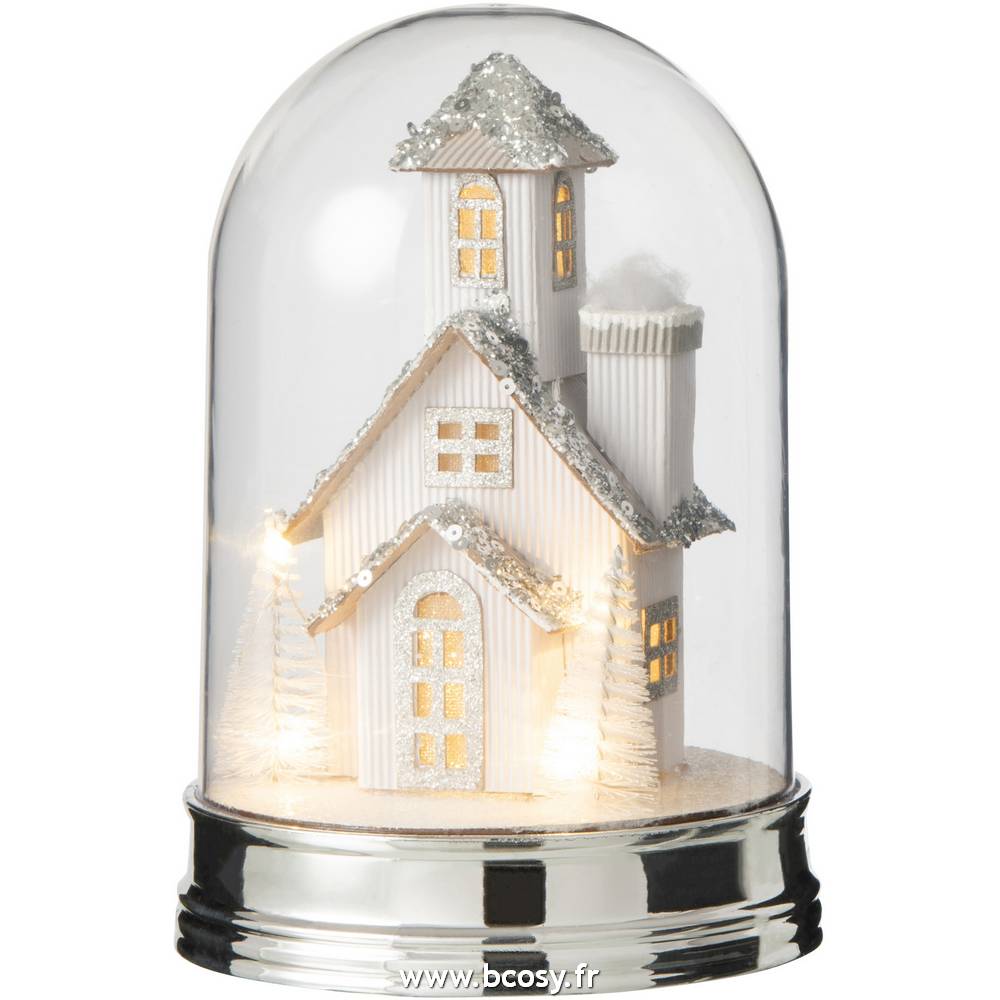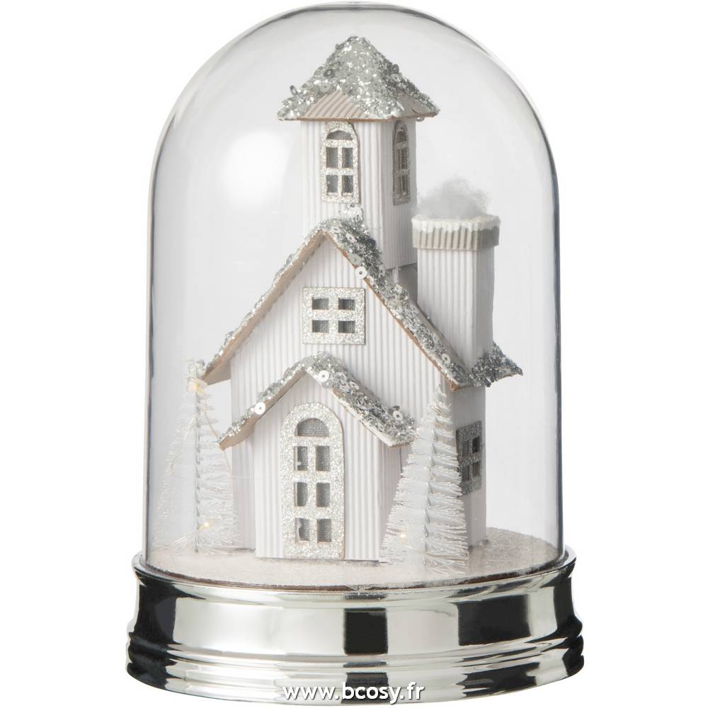 J-Line by Jolipa Cloche Hiver Maison Led Acrylique Blanc Small