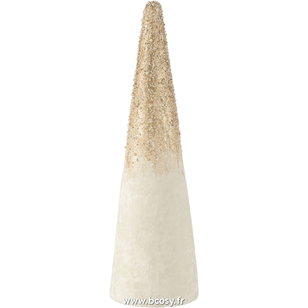 J-Line Cone Velours Ecru Perles Or Large L18xB18xH61 cm 27229