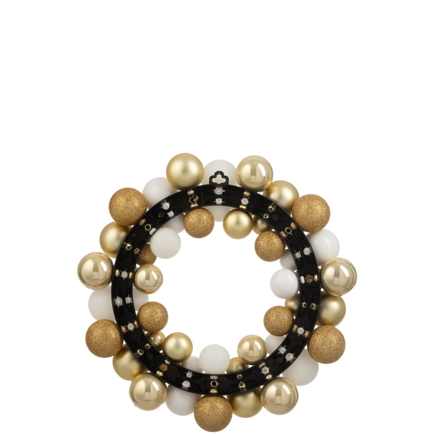J-Line Couronne Boules De Noël Plastique Blanc-Doré L35xB35xH7 cm 59479