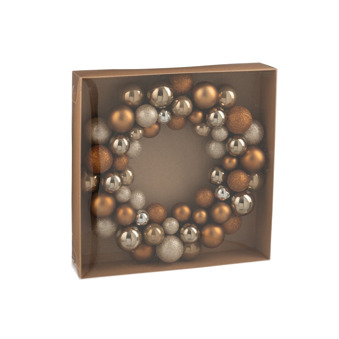 J-Line Couronne Boules De Noël Plastique Marron L35xB35xH7 cm 59487