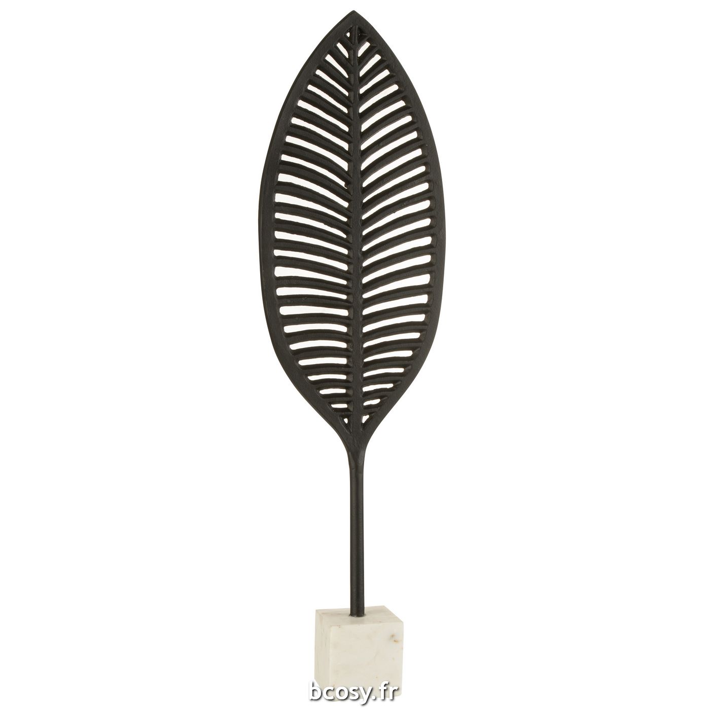 Jolipa Statue Feuille Fin Decorative Aluminium Noir Blanc Large