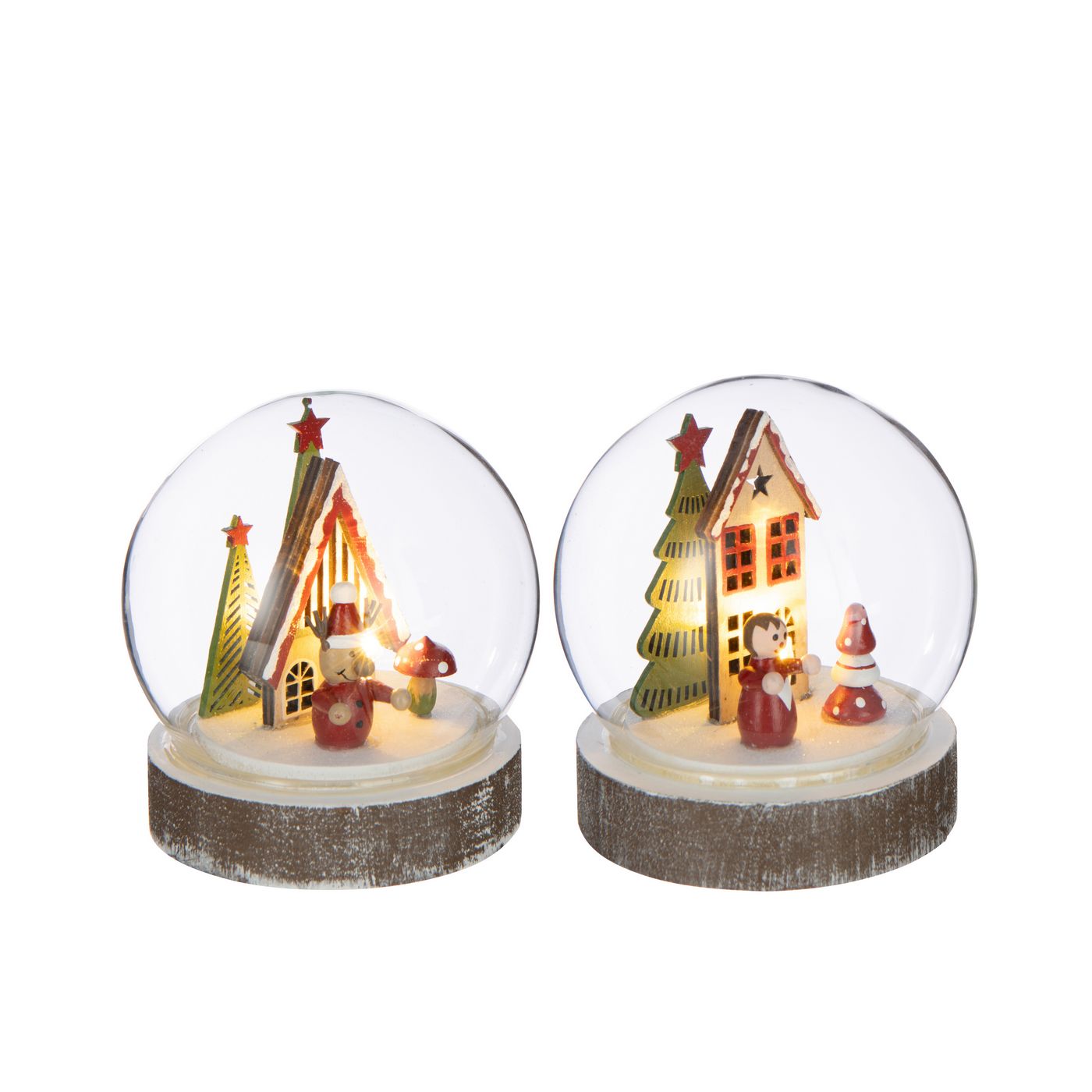 J-Line by Jolipa Boule Led Maison Contreplaqué Blanc/Rouge Noël Assortiment De 2