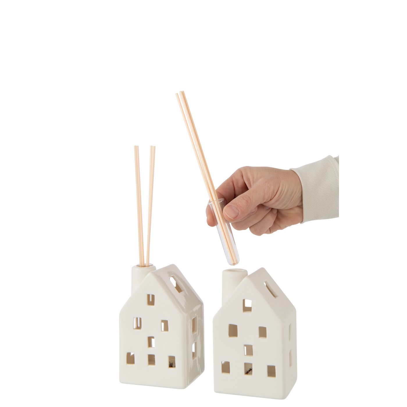 J-Line Vase Maison Led Argile Blanc L8xB7xH13 cm 59685 Assortiment de 2 pcs