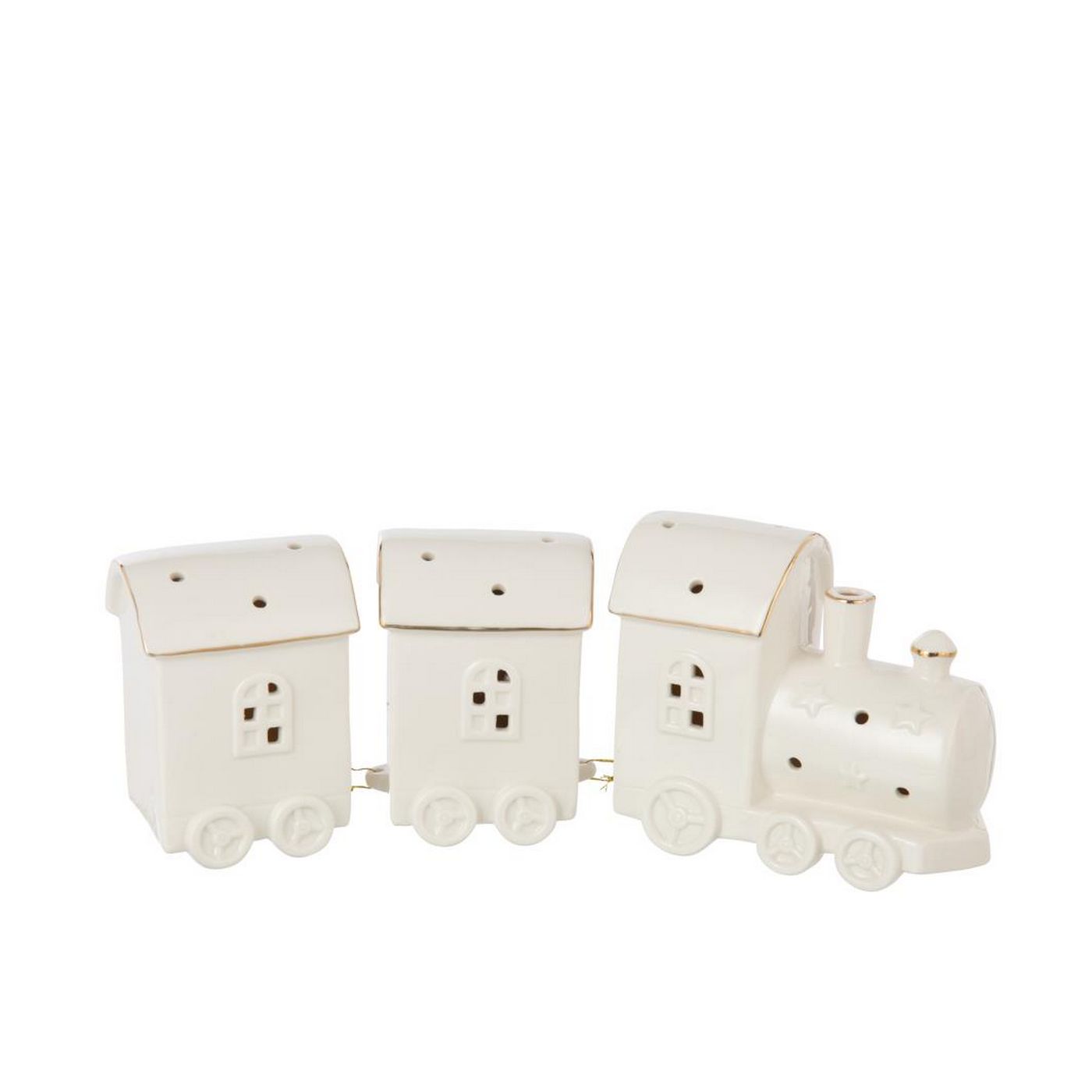 J-Line Train Led 2 Wagons Argile Blanc L31xB7xH12 cm 59693