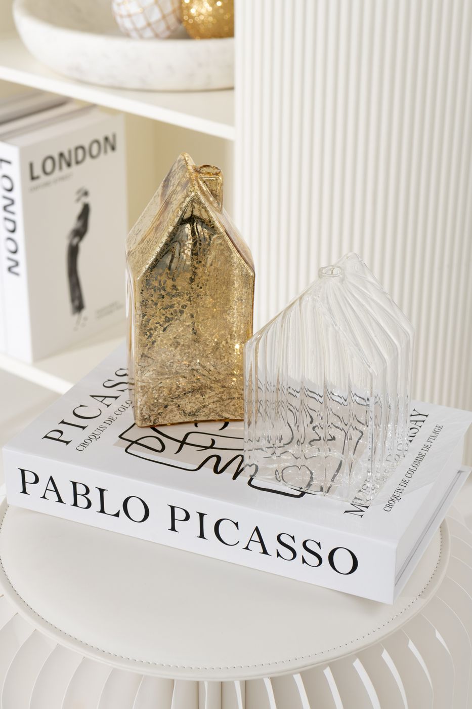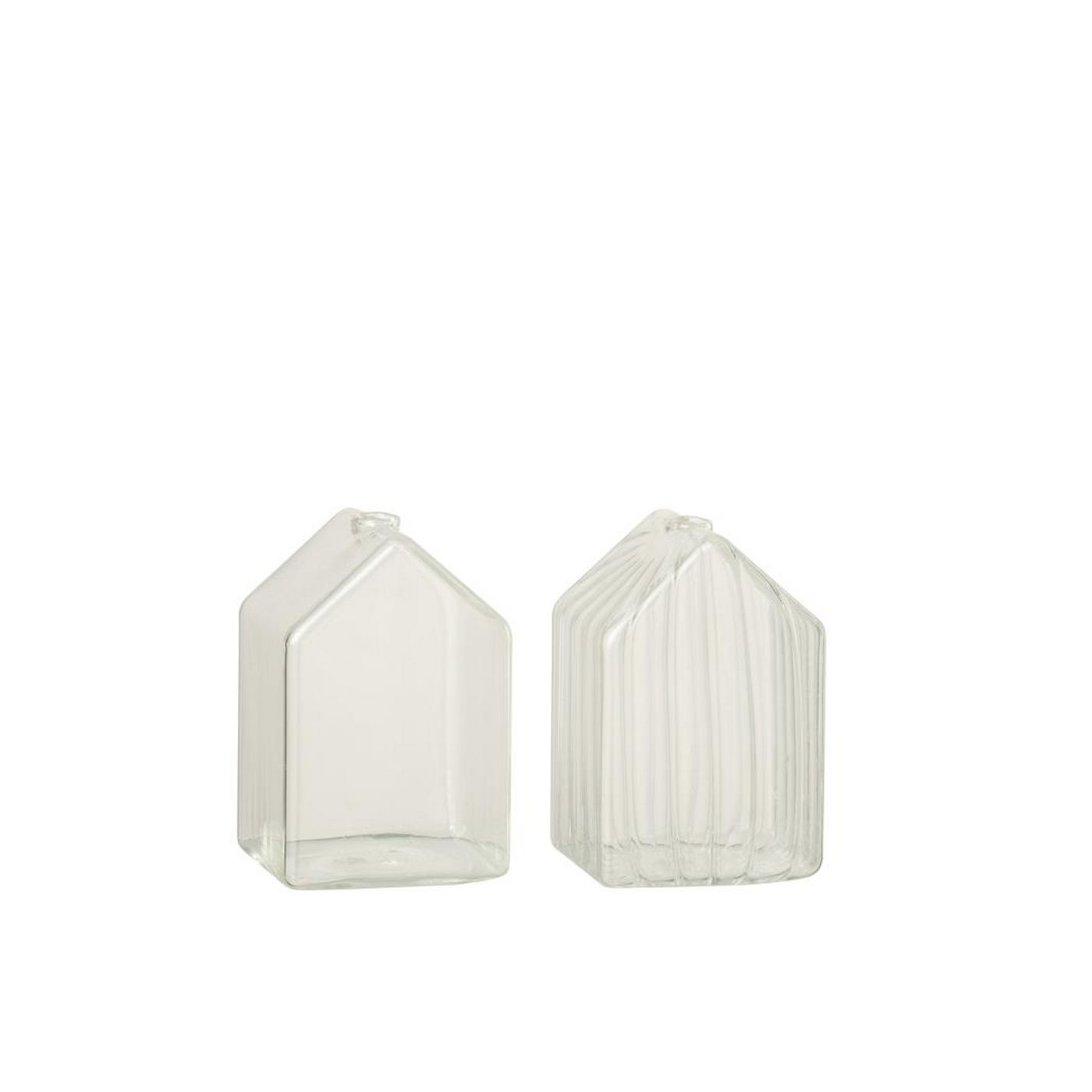 J-Line Maison Plain-Ligné Verre Transparent Small L7xB6xH11 cm 57086 Assortiment de 2 pcs