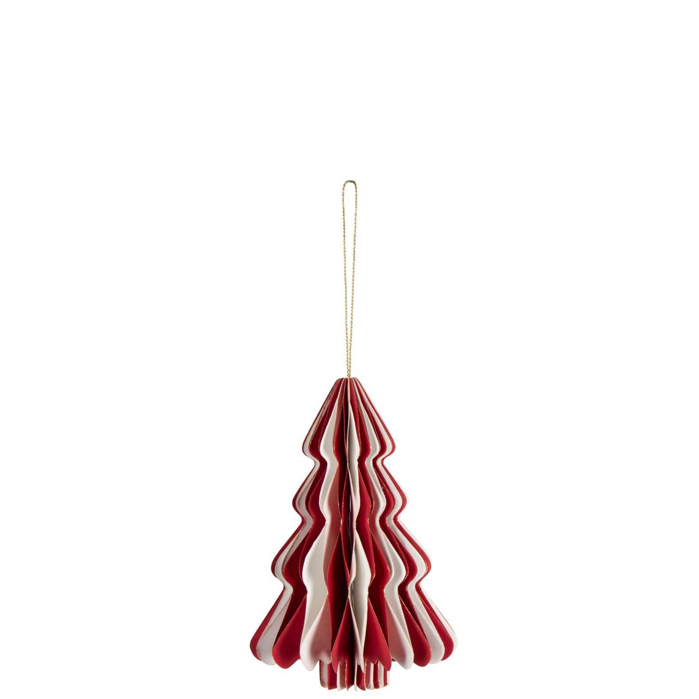 J-Line Suspension Arbre Pliable Papier Blanc-Rouge Noël Large L10xB10xH15 cm 56783