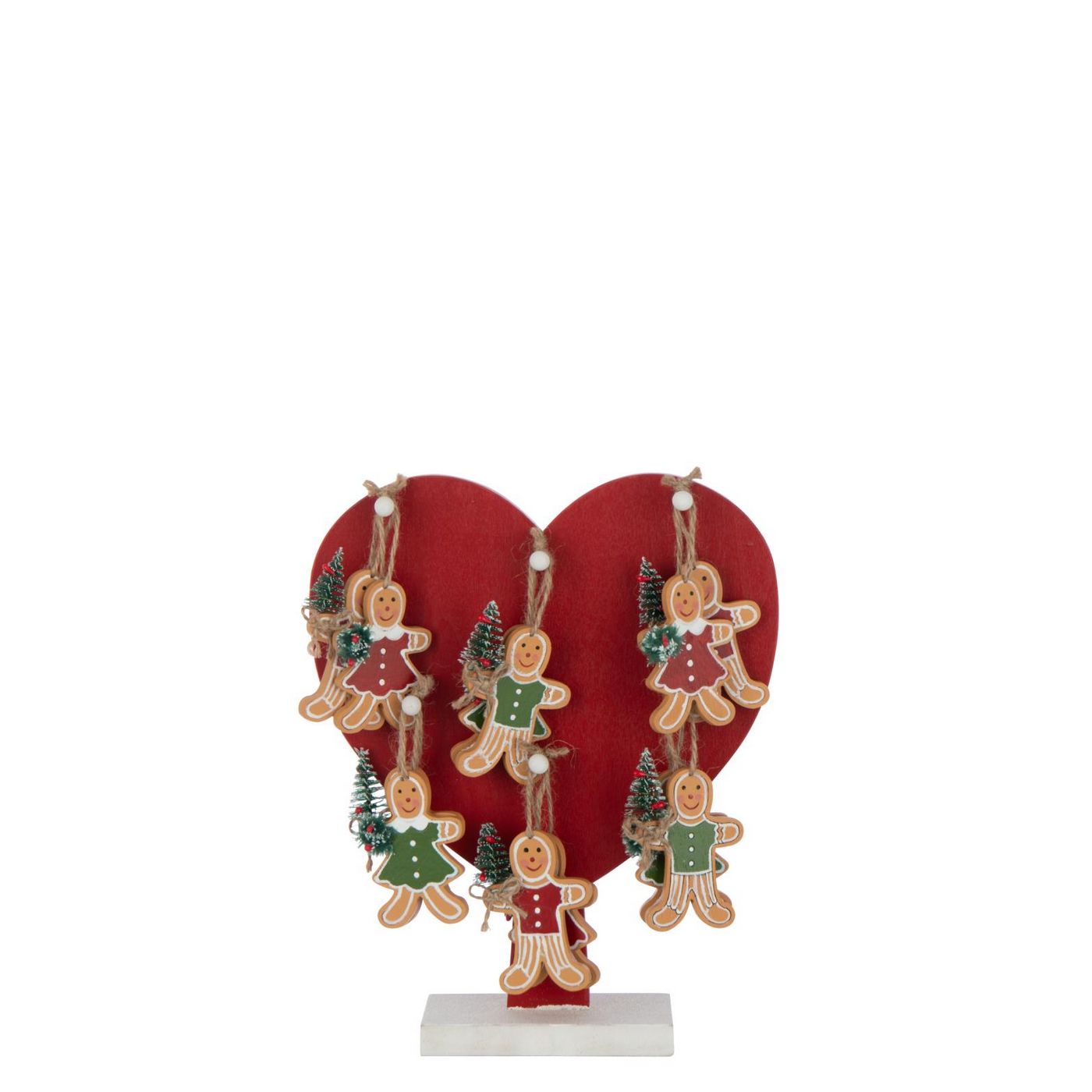 J-Line by Jolipa Cœur + Gingerbread Hangers Contreplaqué Rouge Noël