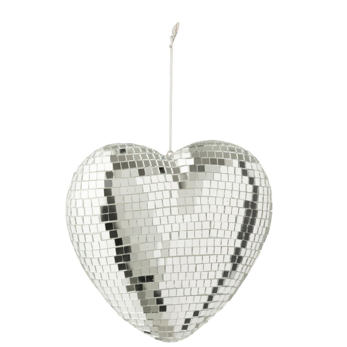 J-Line Suspension Miroir Cœur Mousse Argenté L14xB5xH13 cm 56964