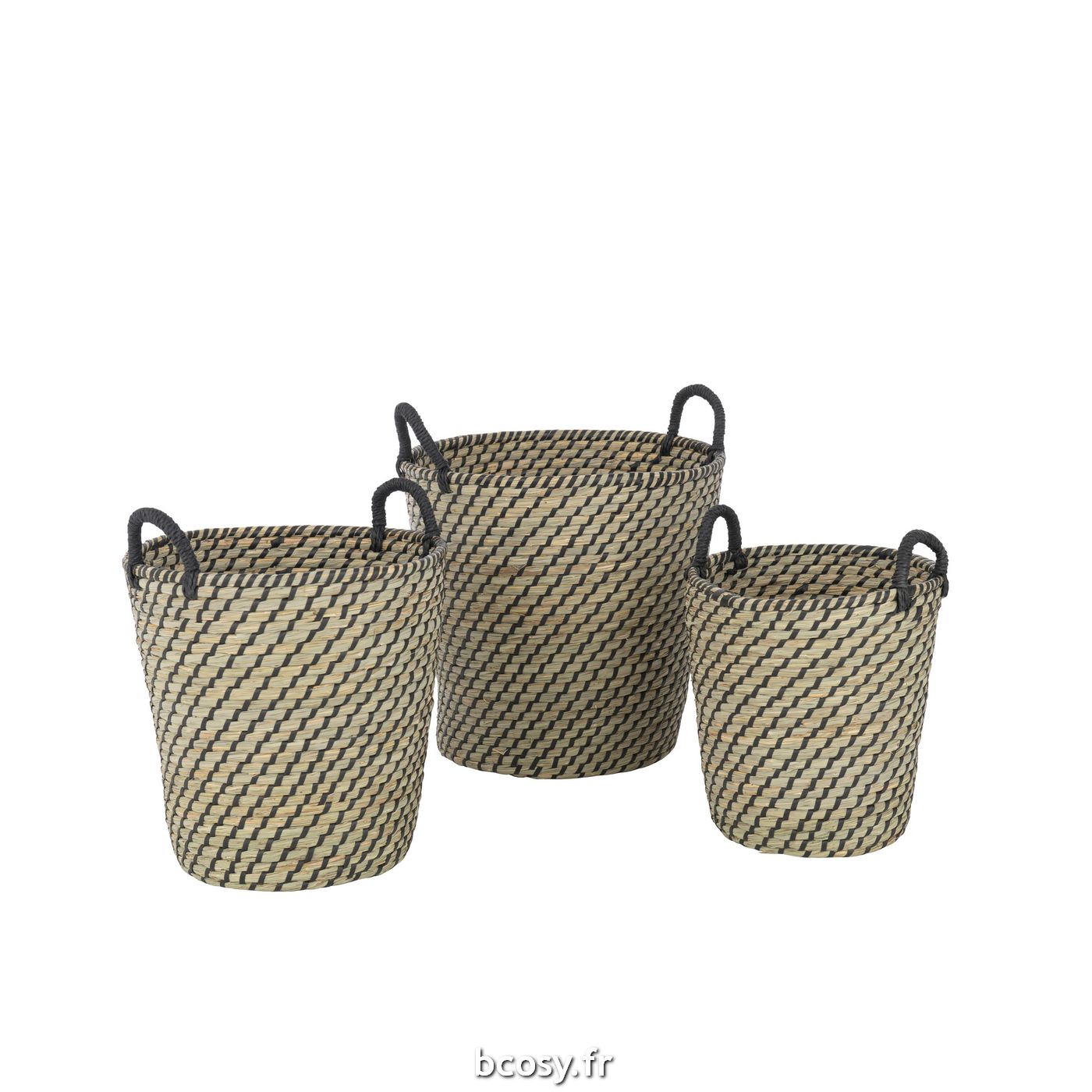 Jolipa Set 3 Paniers Rond Anses Paille Naturel Noir