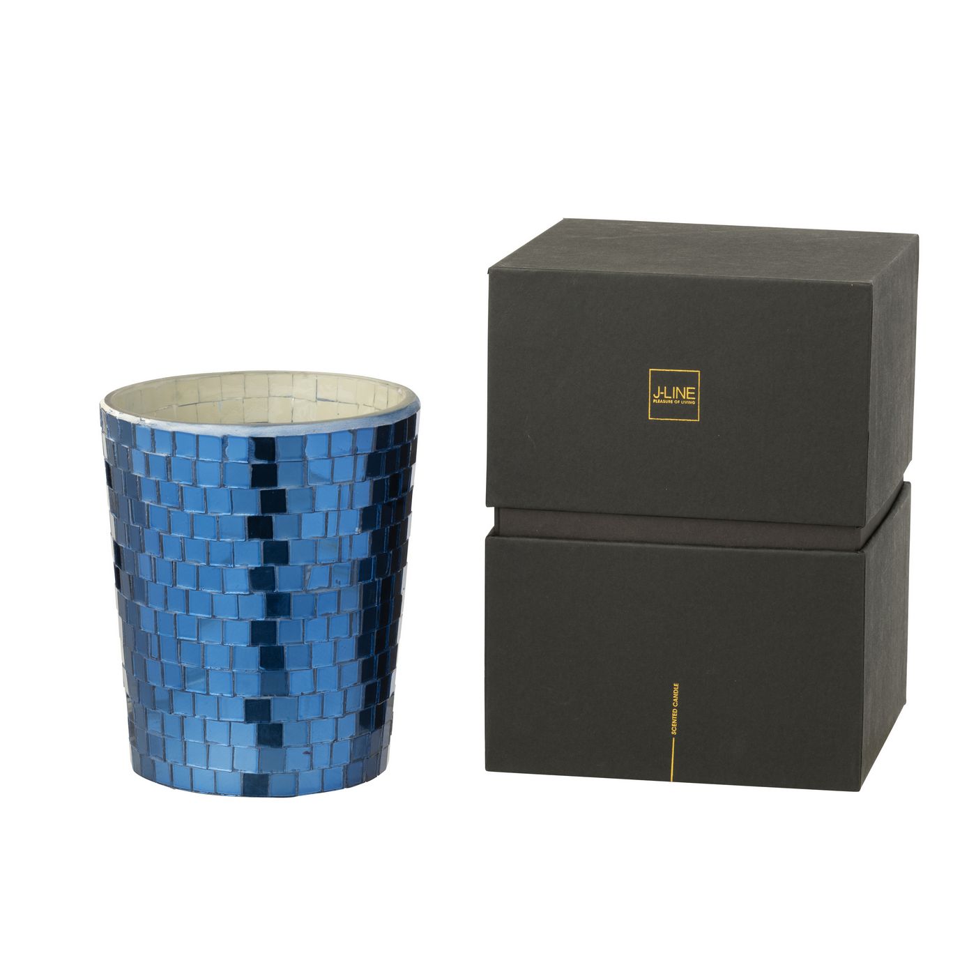 J-Line Bougie Parfumée Miroir Verre Bleu L13xB13xH16 cm 55162