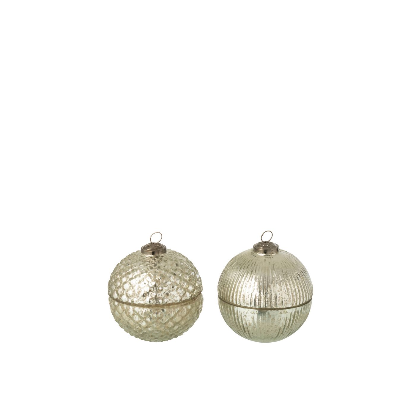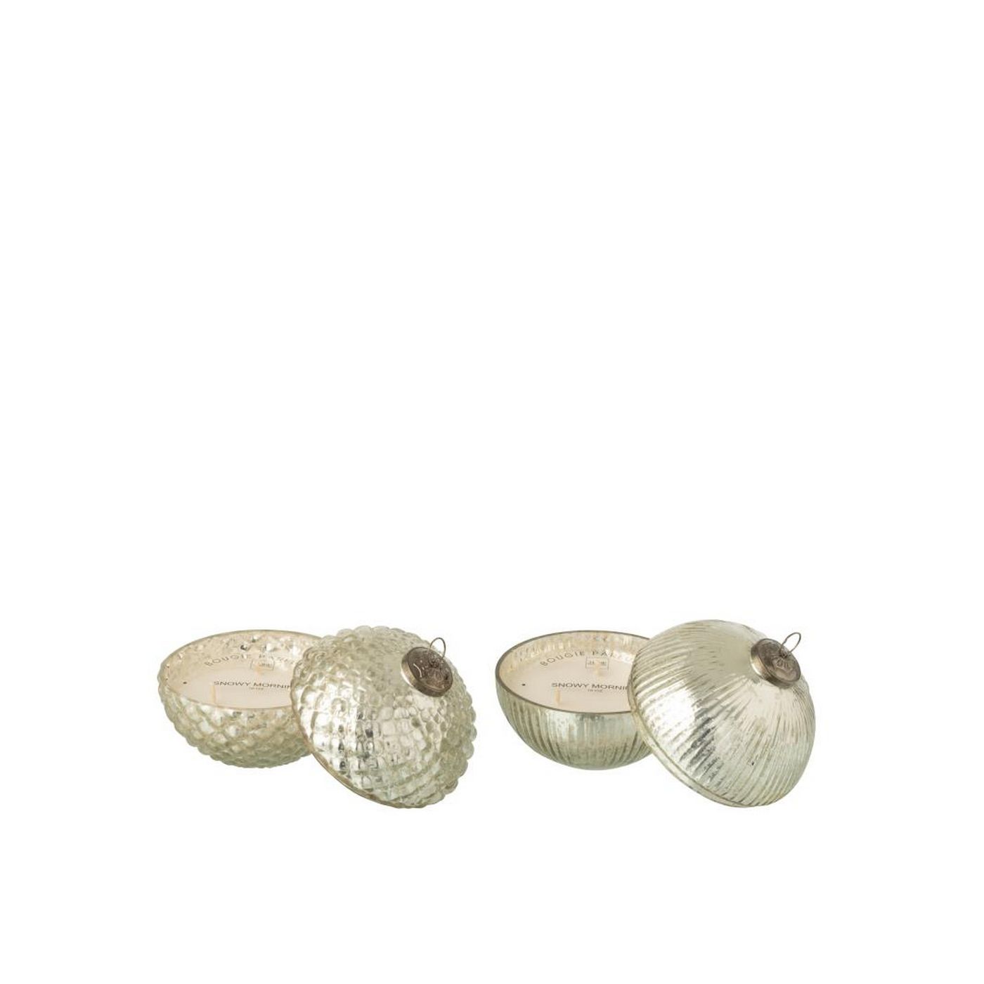 J-Line Bougie Parfumée Boule De Noël Verre Argenté Small L13xB13xH13 cm 55176 Assortiment de 2 pcs