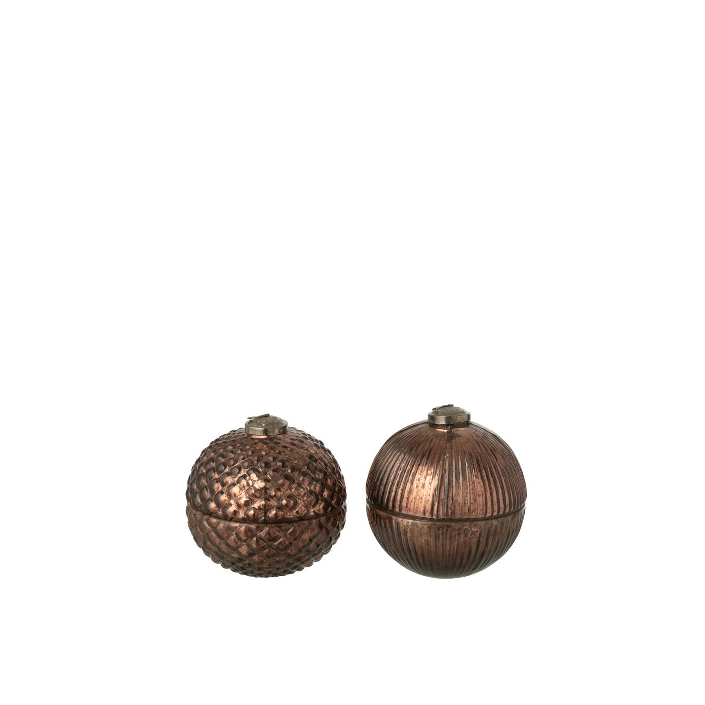 J-Line Bougie Parfumée Boule De Noël Verre Marron Small L13xB13xH13 cm 55198 Assortiment de 2 pcs