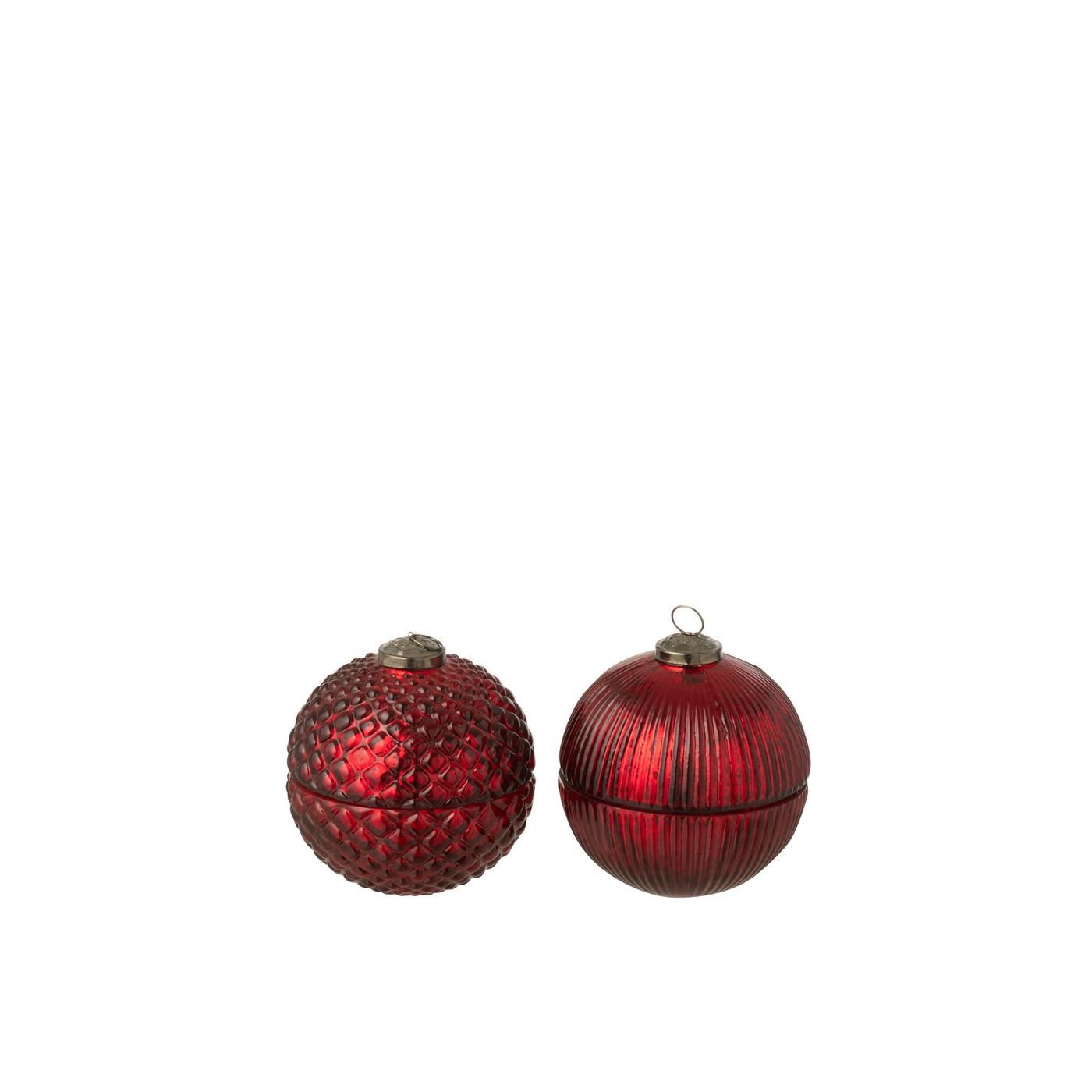 J-Line Bougie Parfumée Boule De Noël Verre Rouge Noël Small L13xB13xH13 cm 55209 Assortiment de 2 pcs