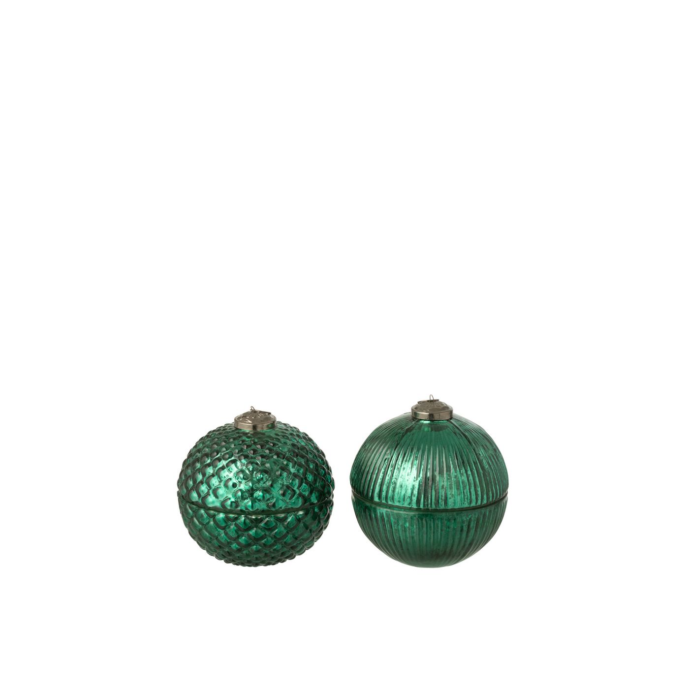 J-Line Bougie Parfumée Boule De Noël Verre Vert Small L13xB13xH13 cm 55220 Assortiment de 2 pcs