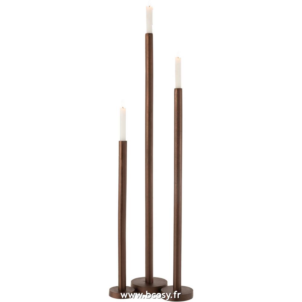 J Line Set De 3 Candelabros Alto Moderno Hierro Opaque Marron Oscuro