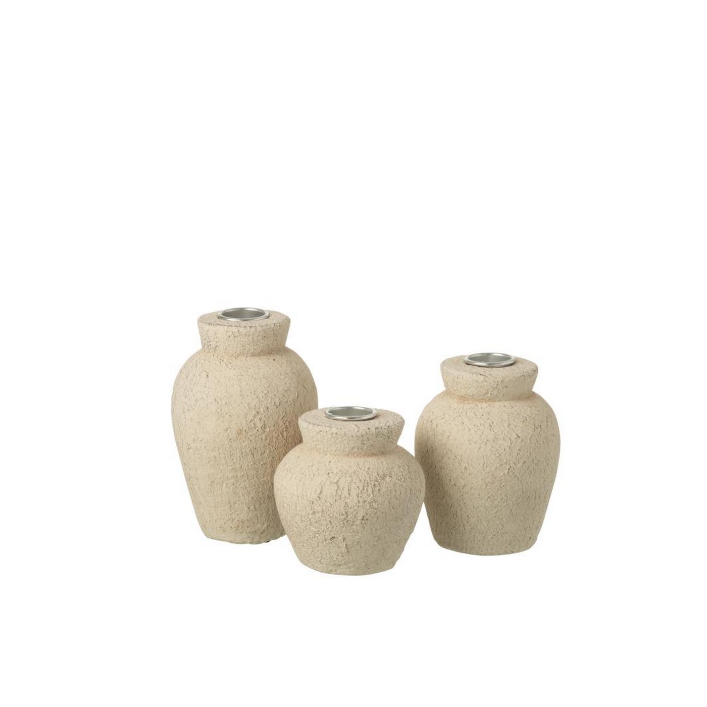 J Line Set Von 3 Kerzenständer Zement Hellbeige