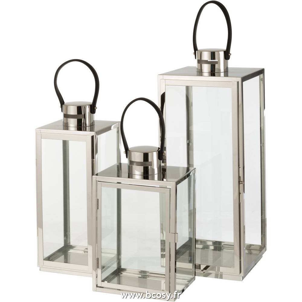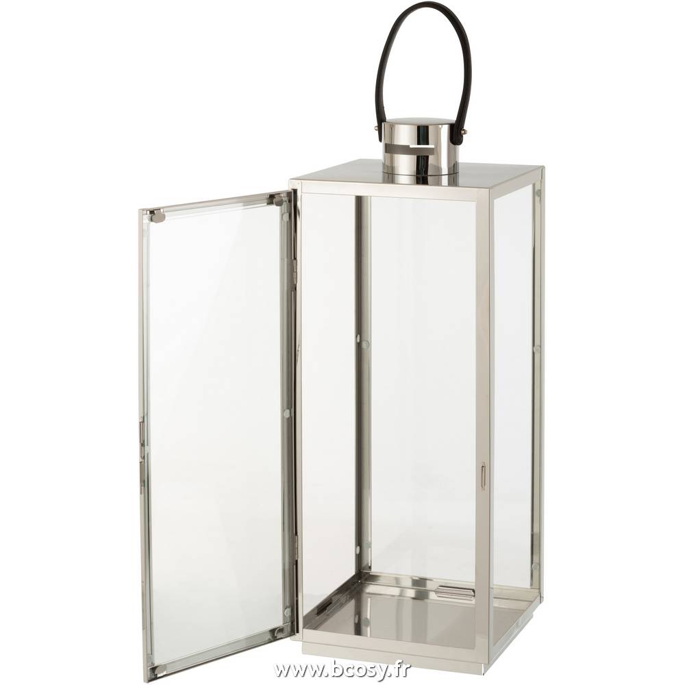 Jolipa Lanterne Carree Metal Verre Argent
