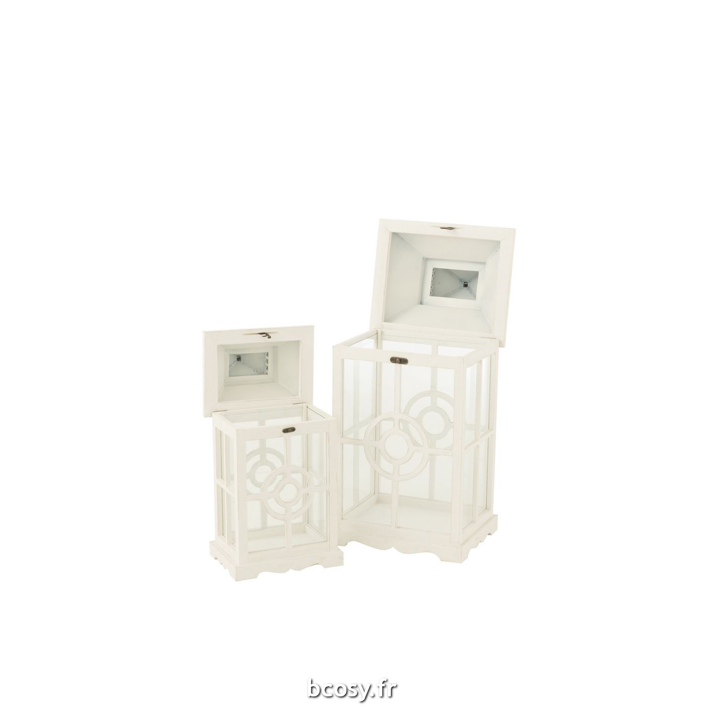 J-Line by Jolipa Set De 2 Lanterne Cercles Bois Blanc