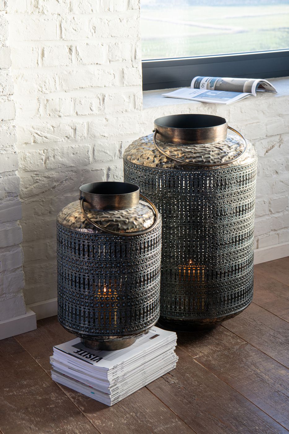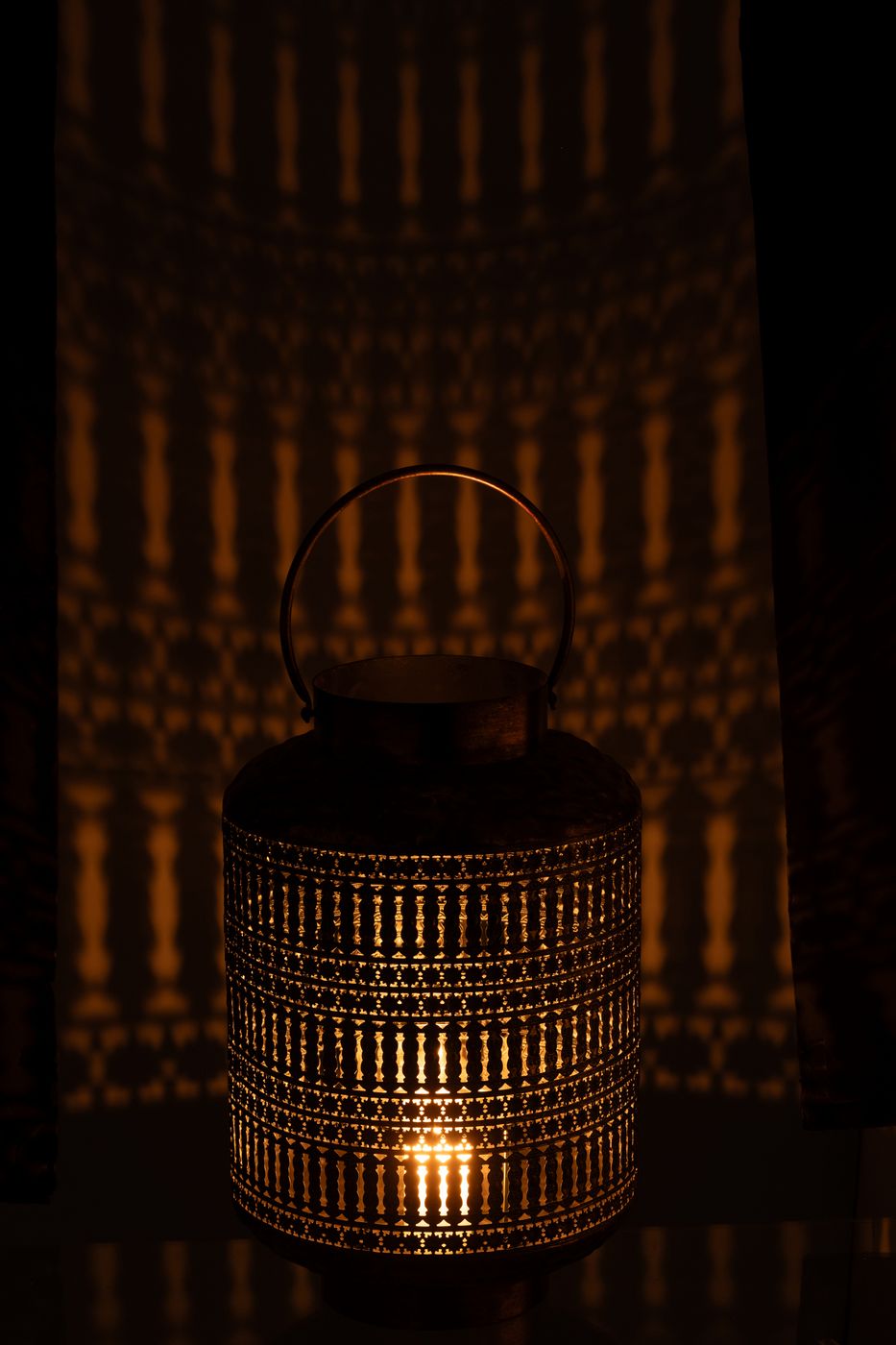 J Line Laterne Antik Zylinder Eisen Bronzefarben Small