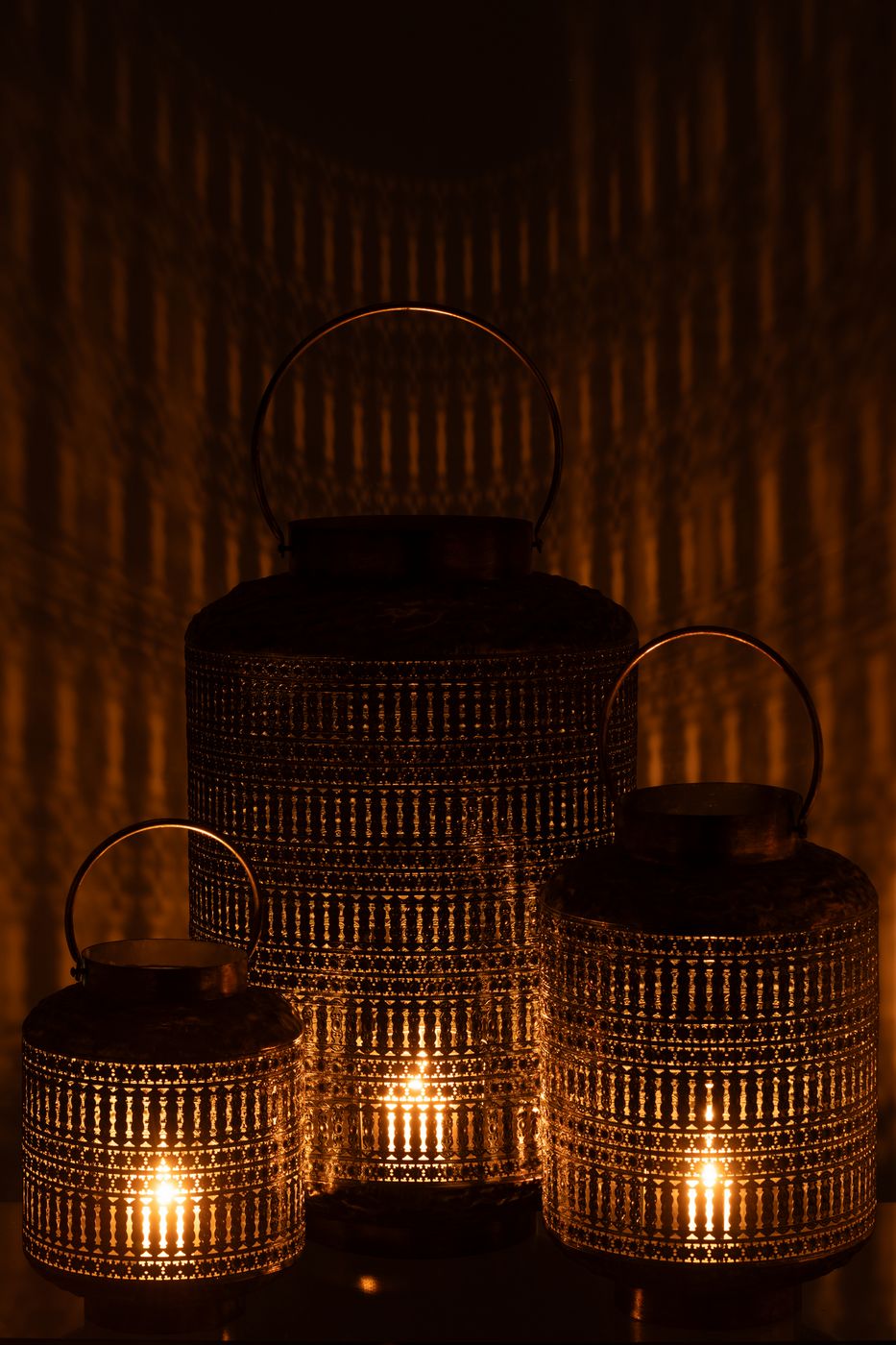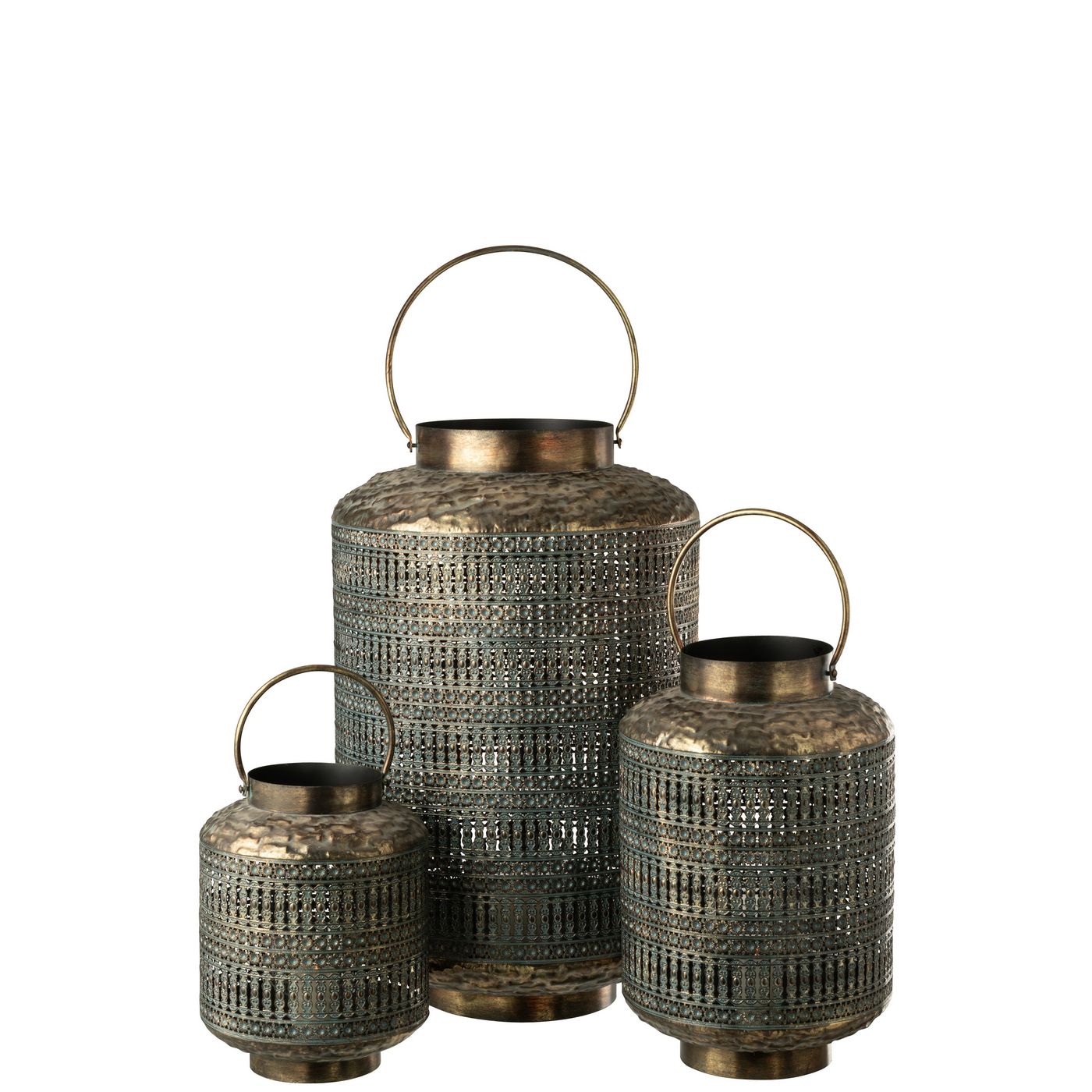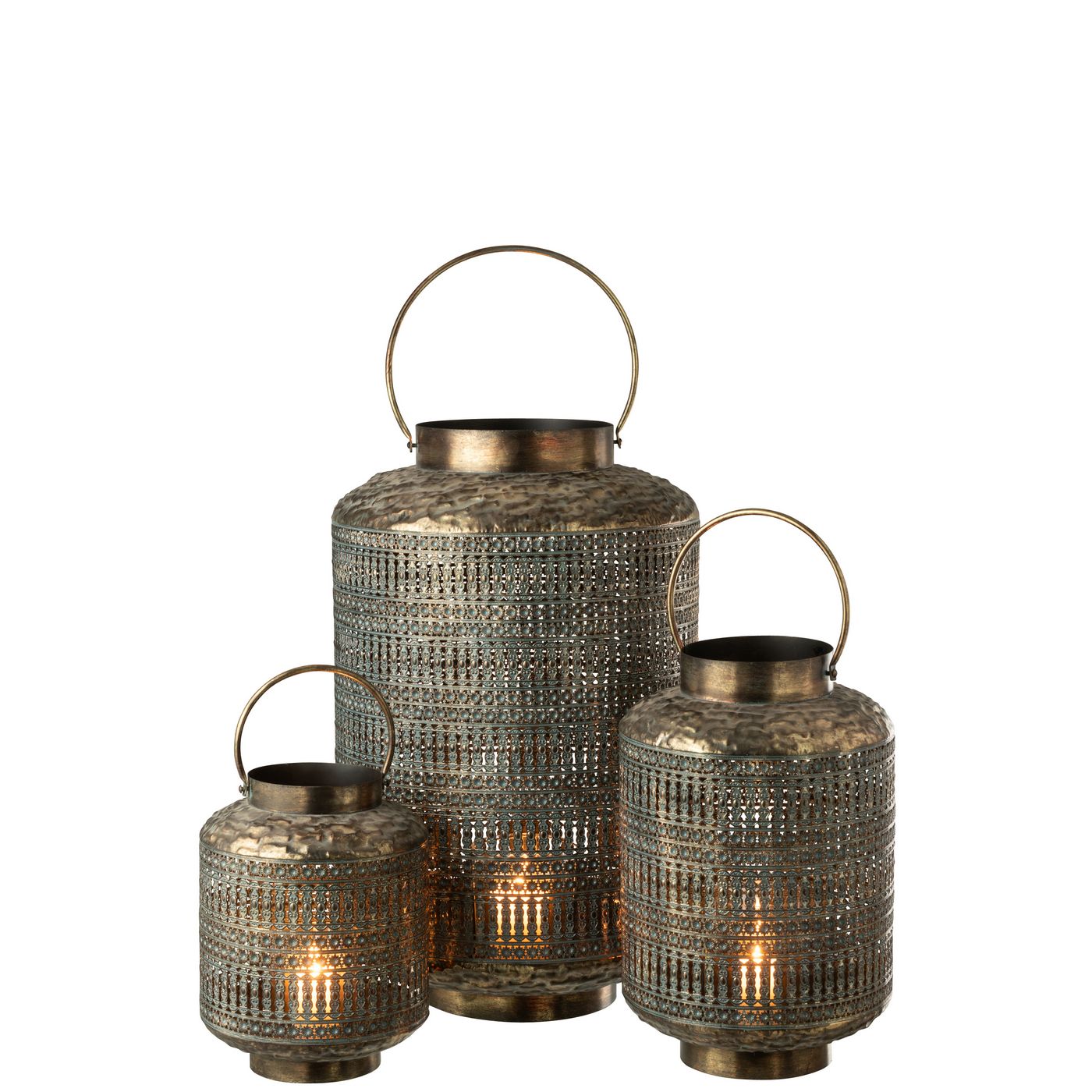 J Line Laterne Antik Zylinder Eisen Bronzefarben Large