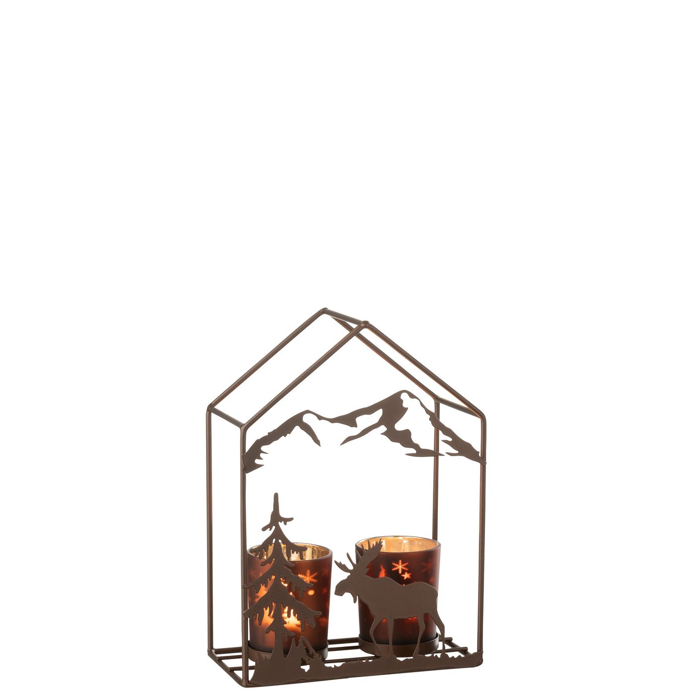 J-Line by Jolipa Photophore Maison 2 Verres Fer Rouille/Marron