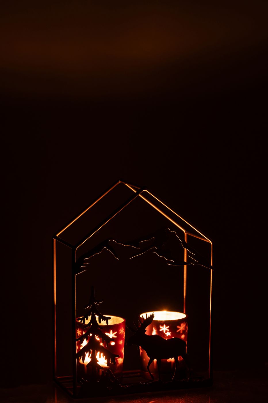 J Line Tealight Holder House 2 Glasses Iron Rust Brown/Brown