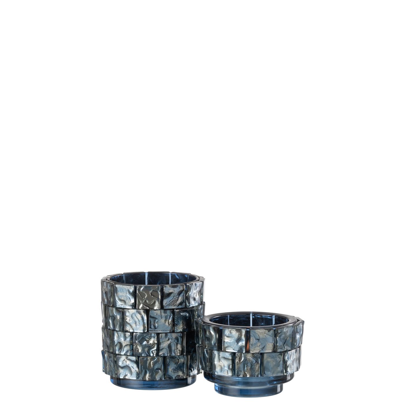 J-Line Photophore Carre Mosaique Verre Bleu Fonce Large 48694