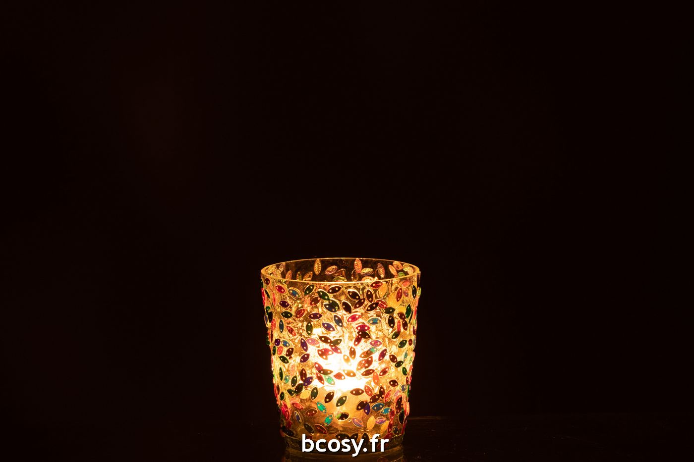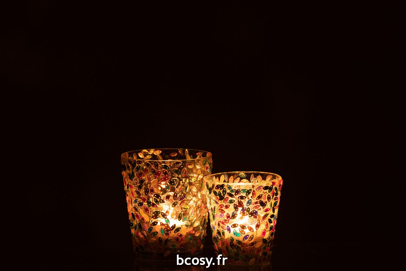 Jolipa Photophore Feuille Mosaique Verre Pastel Large