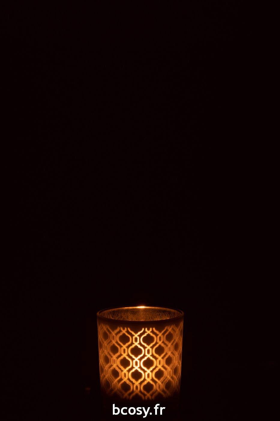 J-Line by Jolipa Photophore Geometrique Verre Beige Small