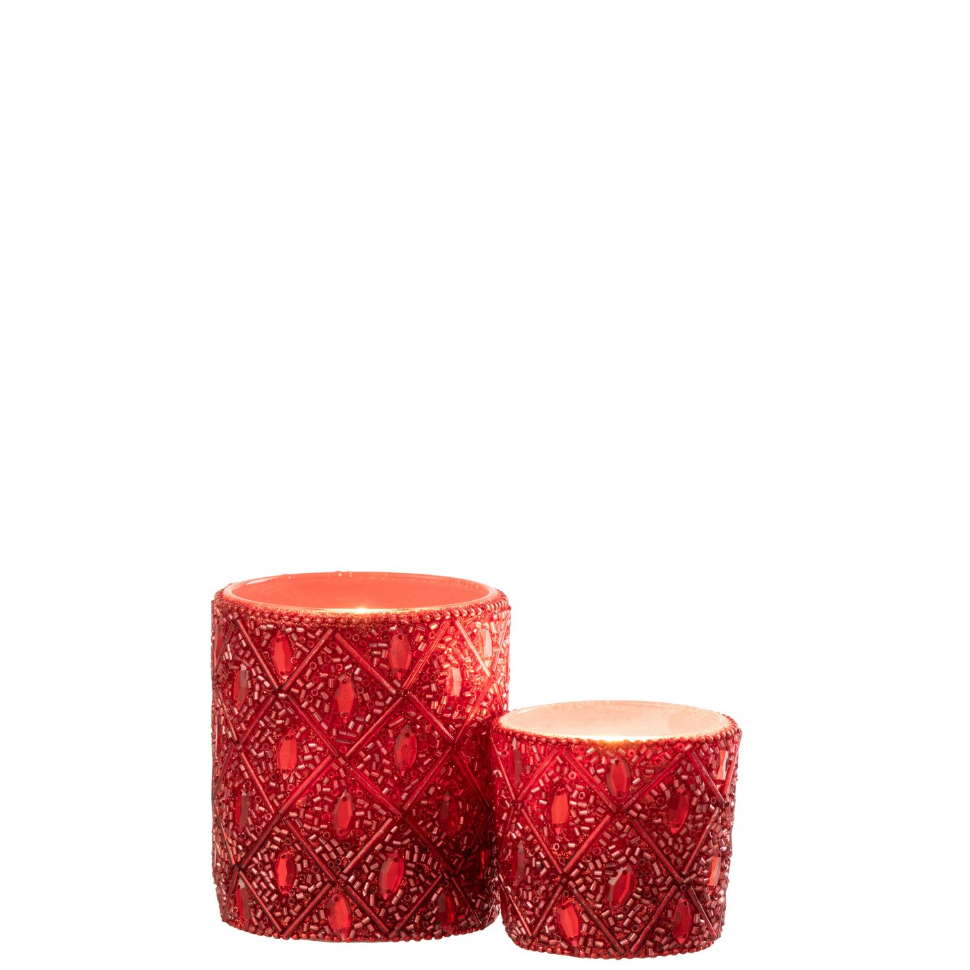 J Line Windlicht Glas/Perlen Weihnachtsrot Large