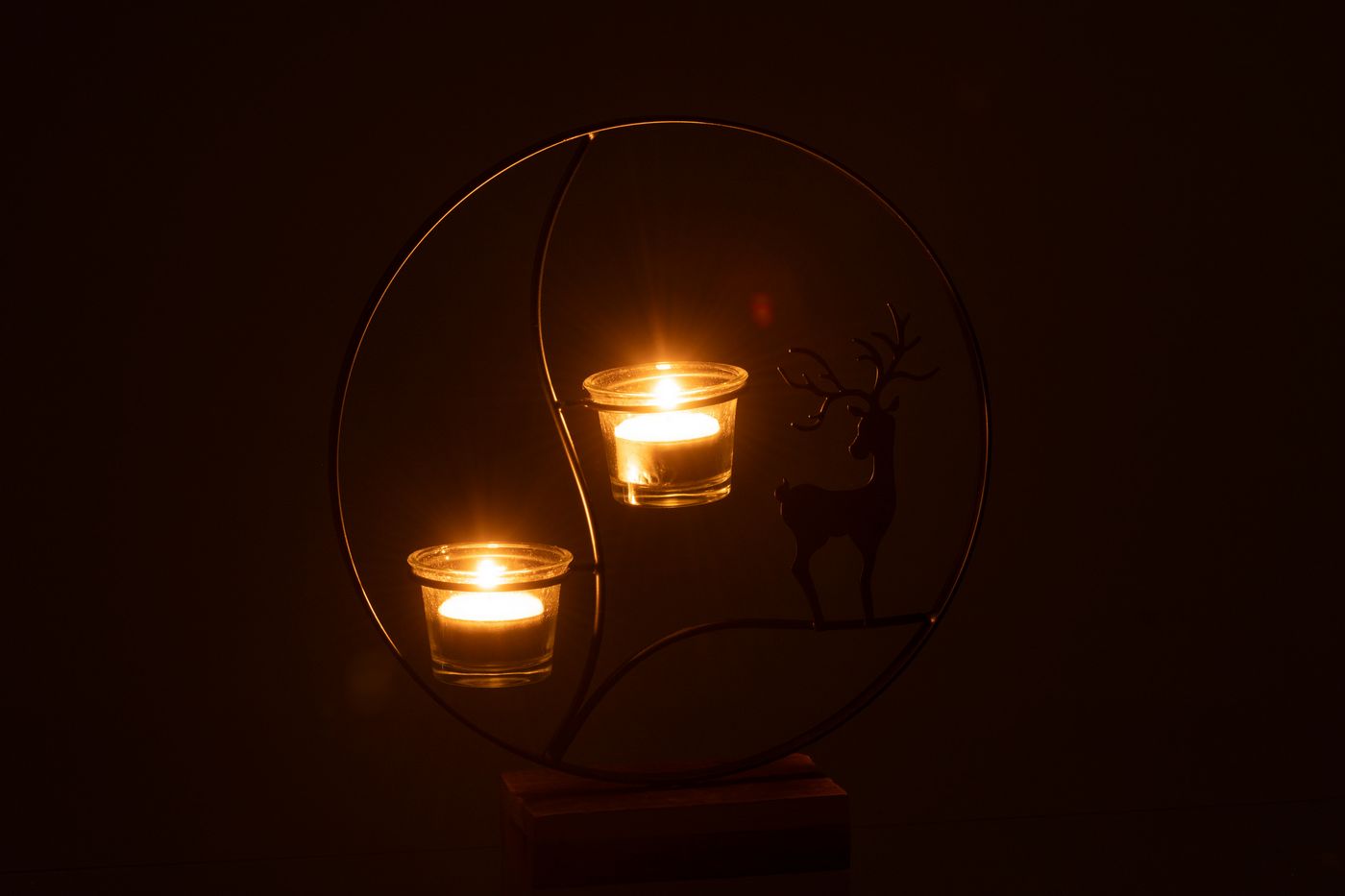Jolipa Photophore Renne Rond Bois Noir Naturel