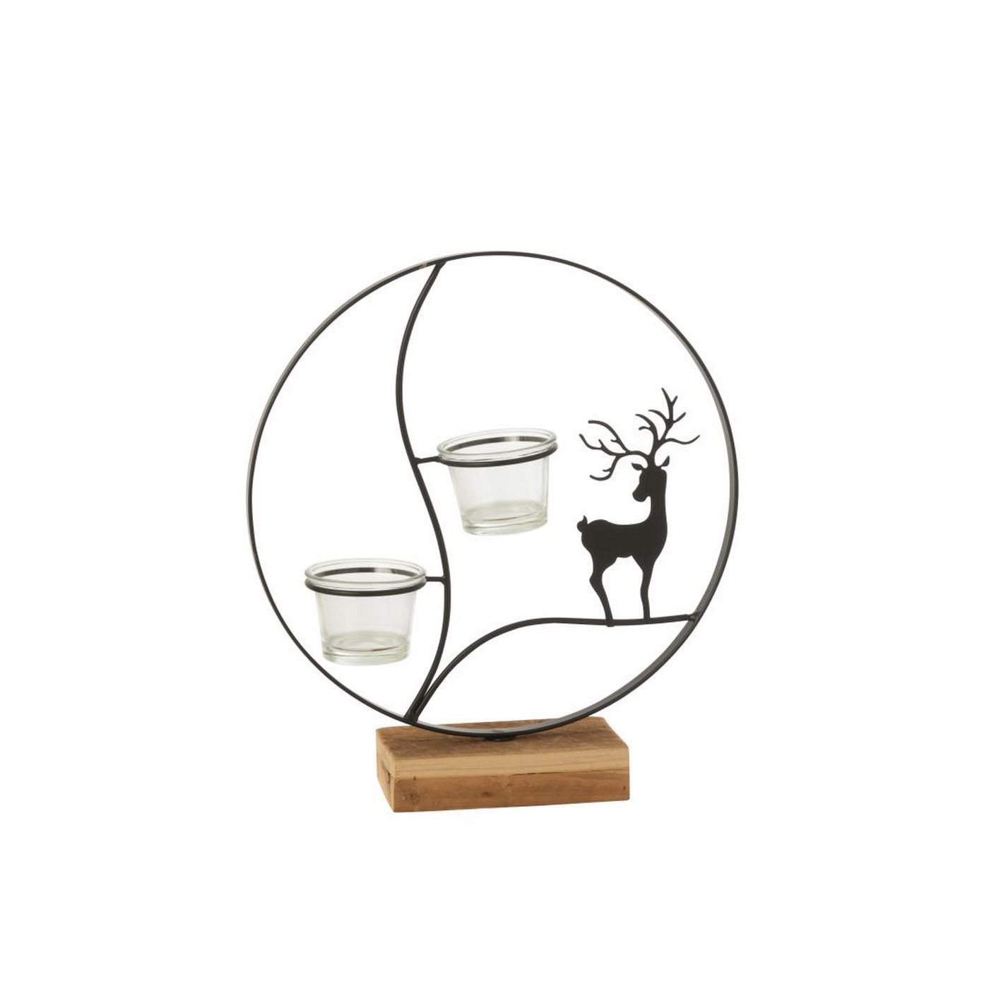 J-Line by Jolipa Photophore Renne Rond Bois Noir/Naturel